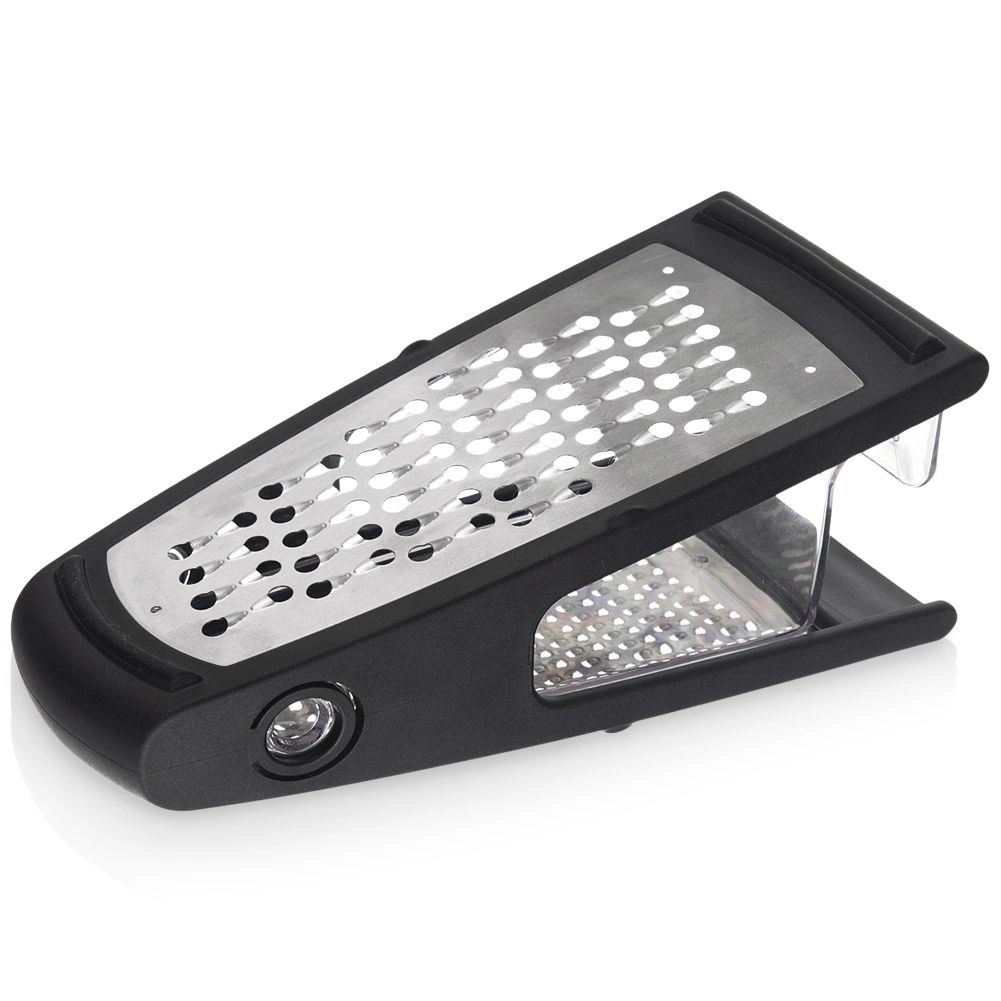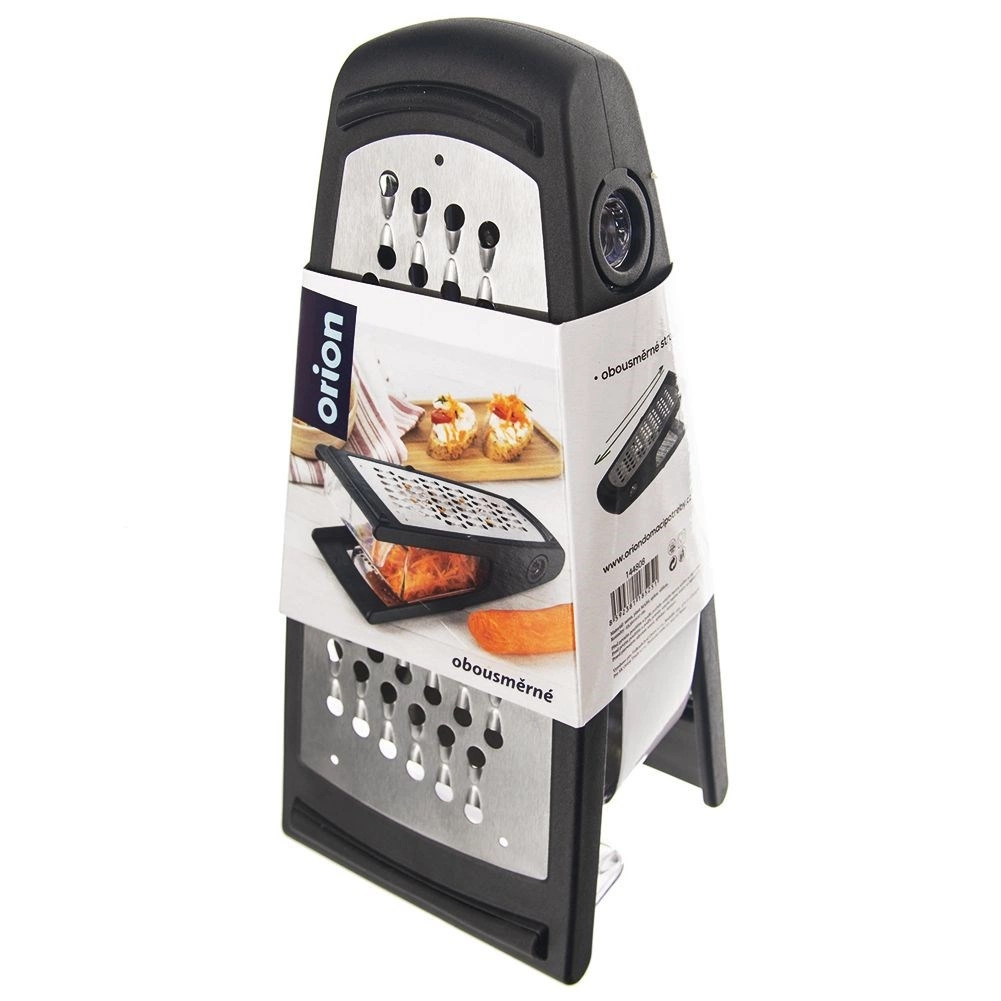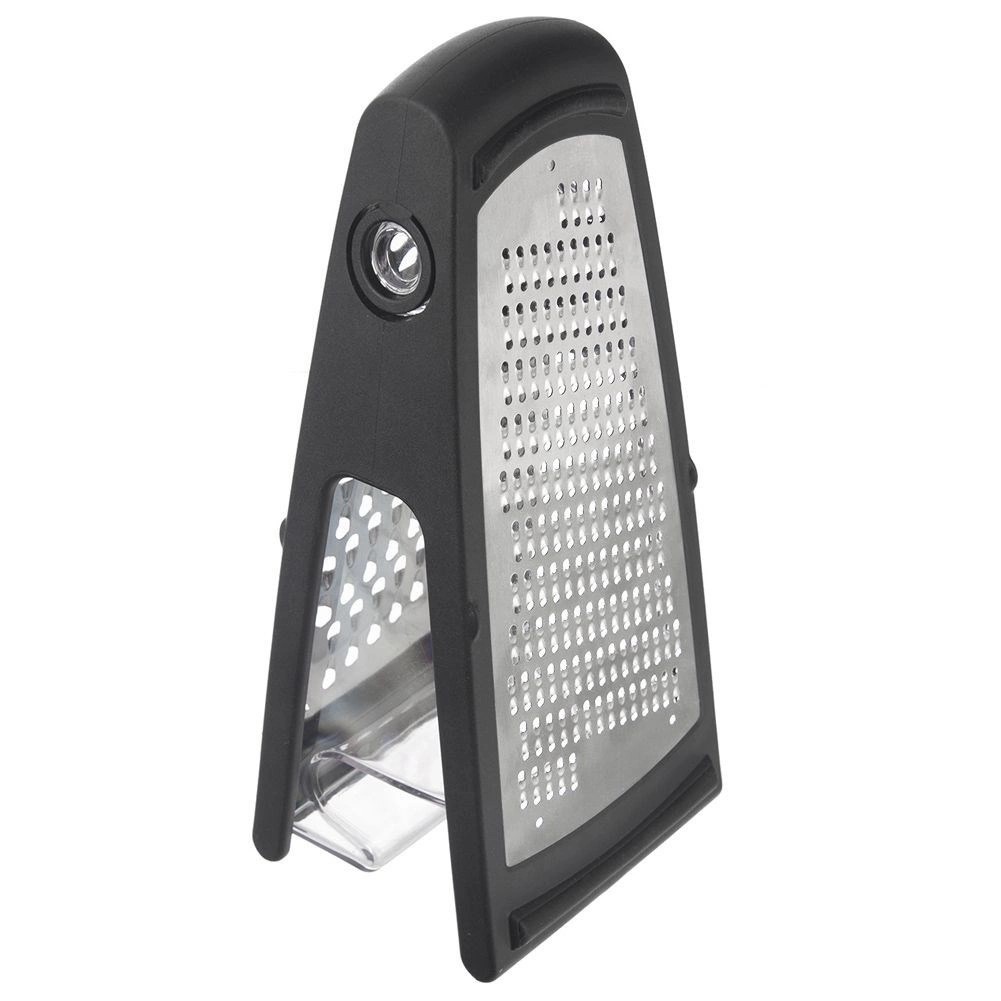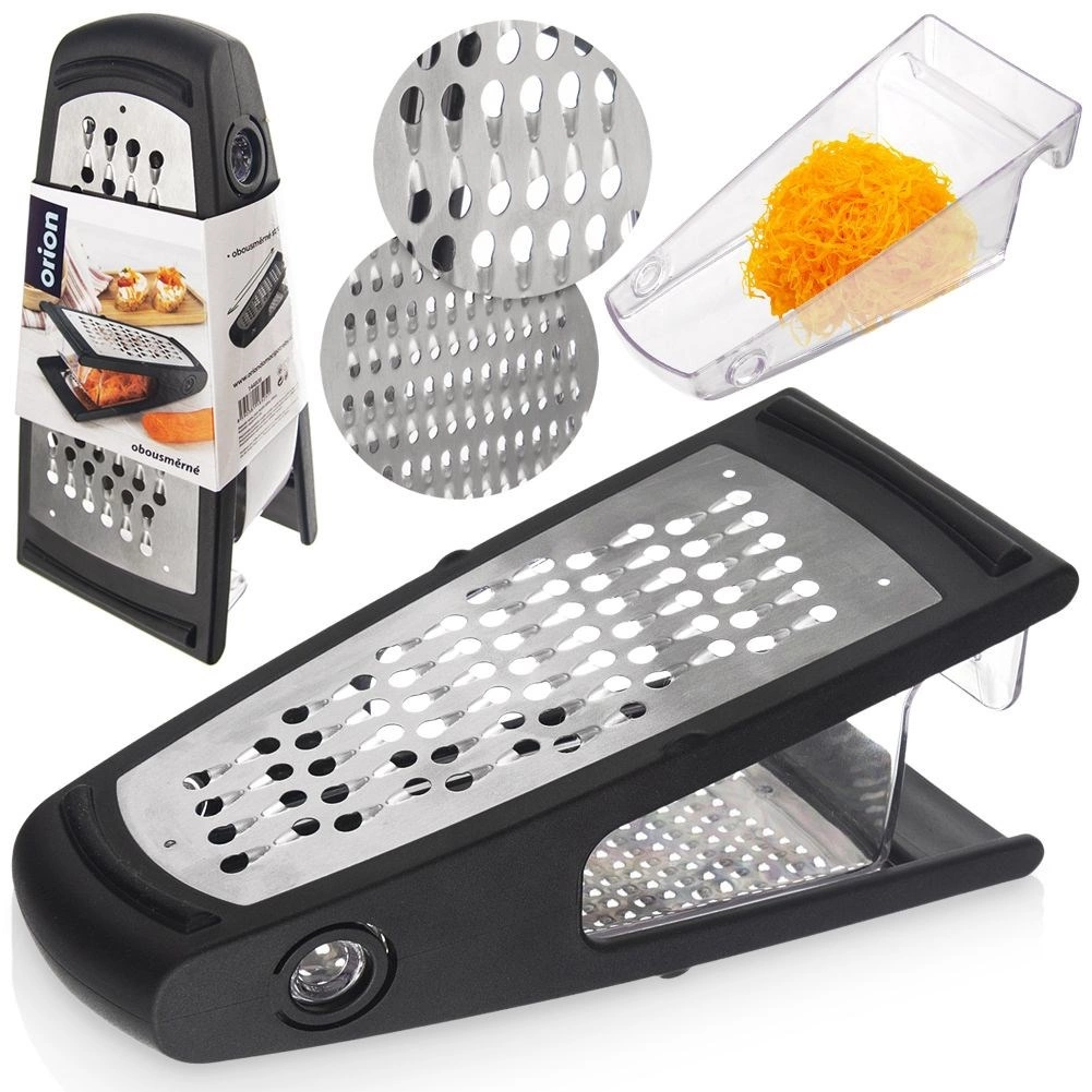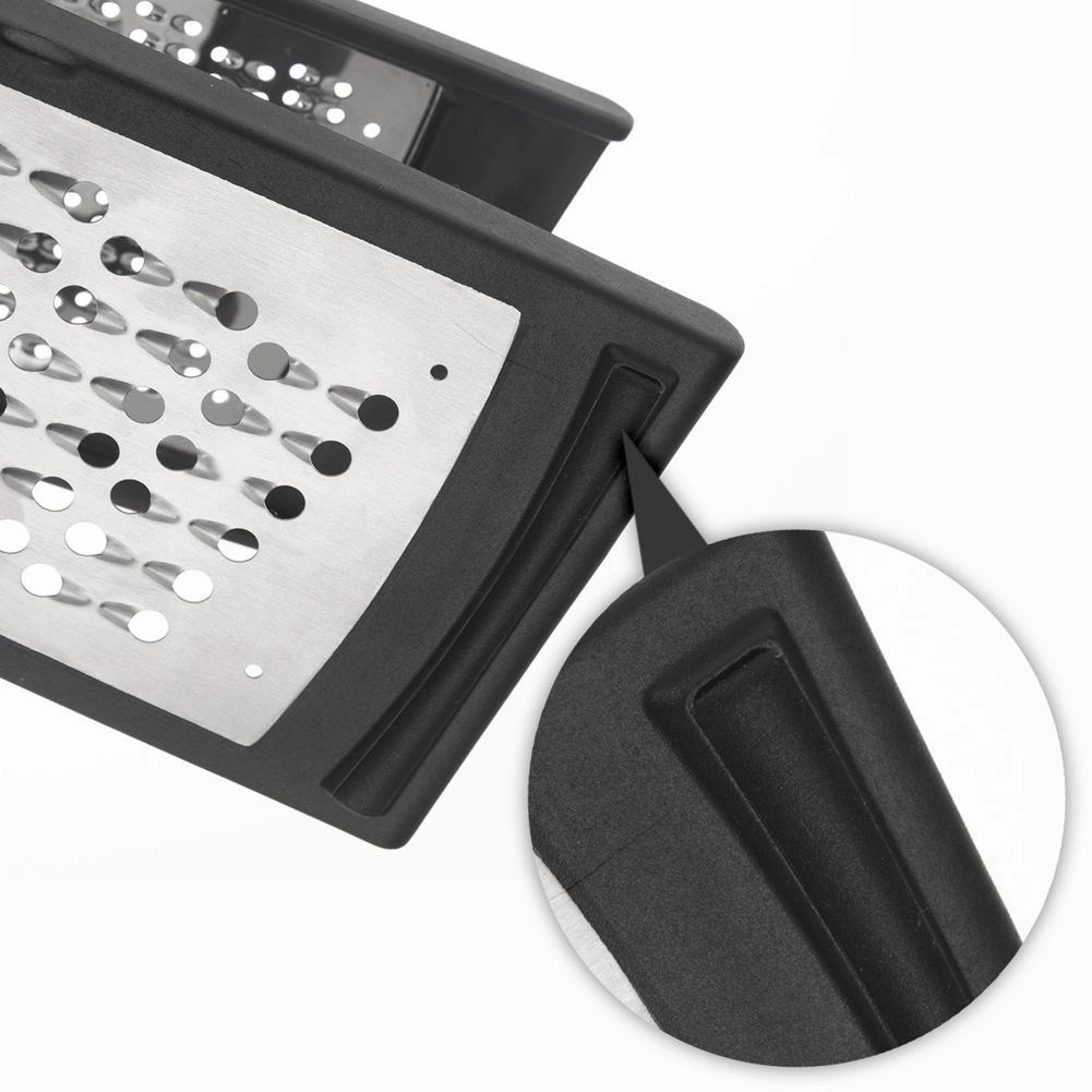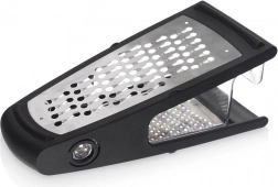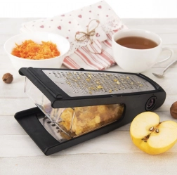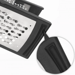 Univerzális konyhai reszelő levehető, átlátszó tartállyal, amely megkönnyíti az alapanyagok előkészítését és tisztán tartja a munkafelületet. A két különböző reszelőfelület tökéletes eredményt ad zöldségek, gyümölcsök, sajtok, csokoládé és fűszerek reszeléséhez. A stabil csúszásgátló végek megakadályozzák az elmozdulást munka közben.
