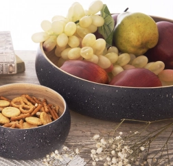 Ez a stílusos bambusz tál a világos fa természetes megjelenését ötvözi a modern, szürke, pettyezett külsővel. A 4 l-es űrtartalomnak és a széles, alacsony formának köszönhetően tökéletes mindennapi tálaláshoz: salátákhoz, gyümölcshöz, snackekhez és 40 °C-ig meleg ételekhez.