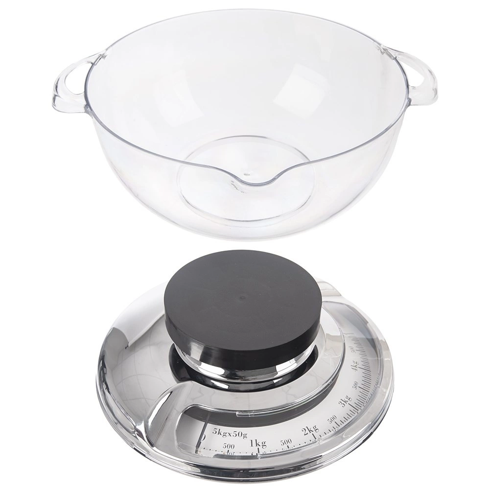Praktikus, mechanikus konyhai mérleg levehető tálkával és legfeljebb 5 kg teherbírással – megbízható segítőtárs sütéshez és főzéshez. Jól olvasható analóg mérést kínál g és kg egységekben, pontos beosztással és elemek nélküli működéssel. A tágas, 2,2 l-es tál kiöntőcsőrrel és fogantyúkkal megkönnyíti a munkát, a csúszásgátló betétek stabilitást és a munkalap védelmét biztosítják.