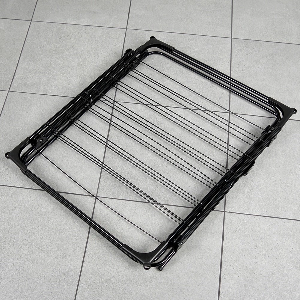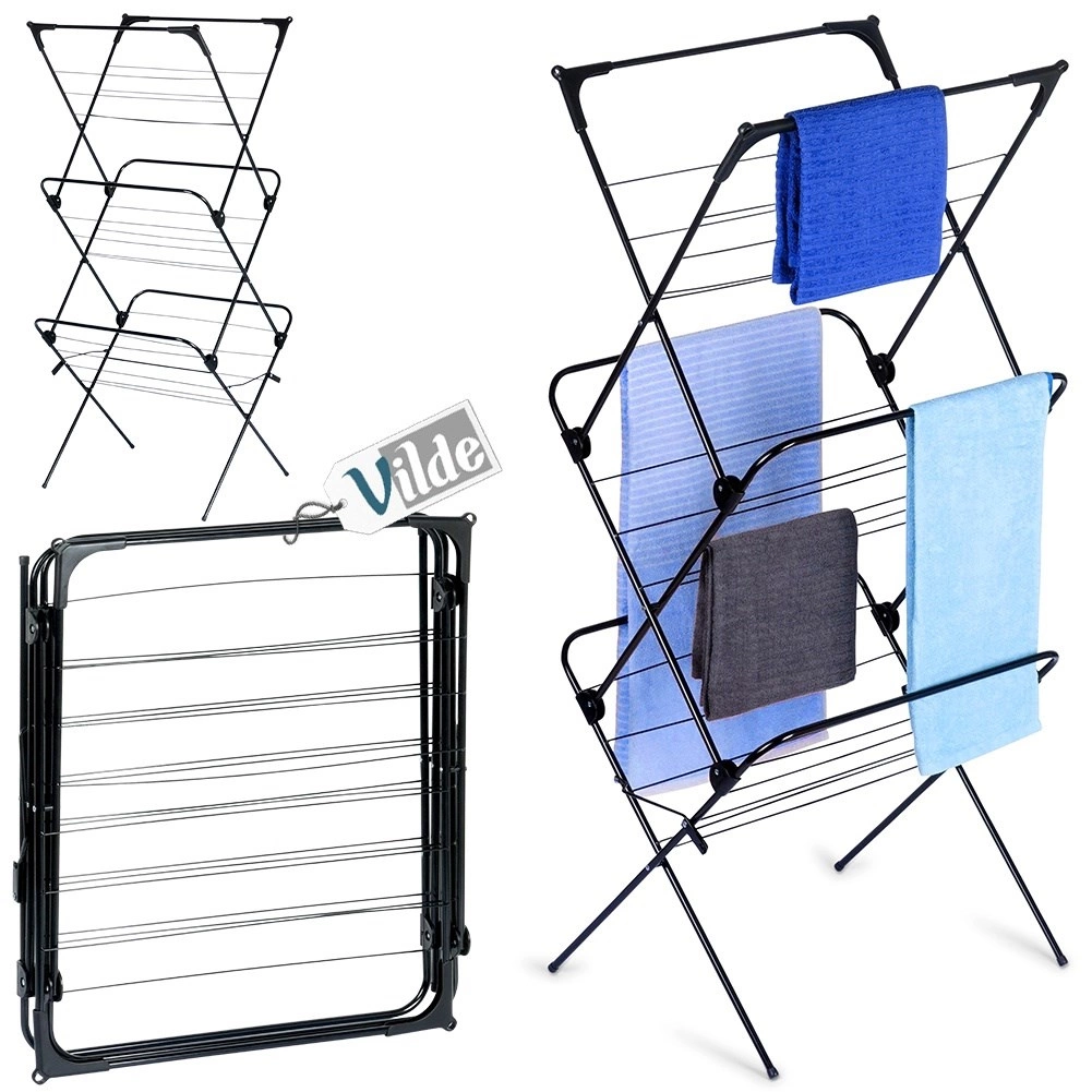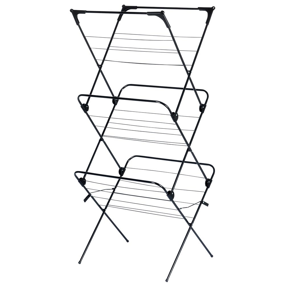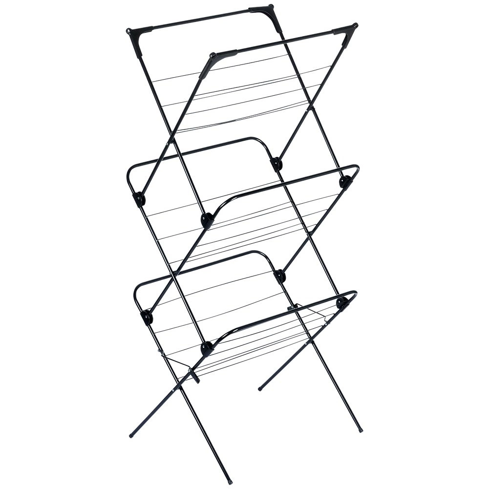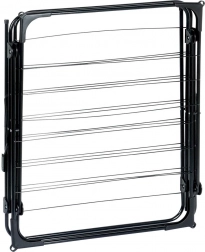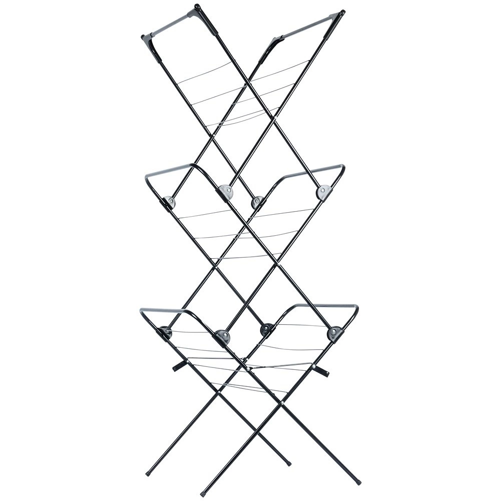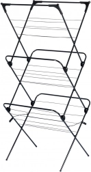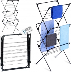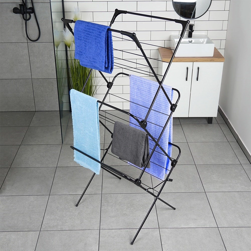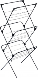 Ez az elegáns, fekete színű, függőleges ruhaszárító tartós, porszórt fém kivitelben készül. A három szint elegendő helyet biztosít törölközőknek, ingeknek és finom fehérneműnek, míg a stabil X-konstrukció biztonságos használatot nyújt beltéren és kültéren egyaránt.