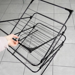 A gyors összecsukó mechanizmusnak köszönhetően könnyen 74 × 61 × 7 cm-re hajtható, és elhelyezhető a szekrény mellett vagy egy keskeny résben. Minimalista kialakítása bármely otthonba illik, és megkönnyíti a mindennapi ruhaszárítást.
