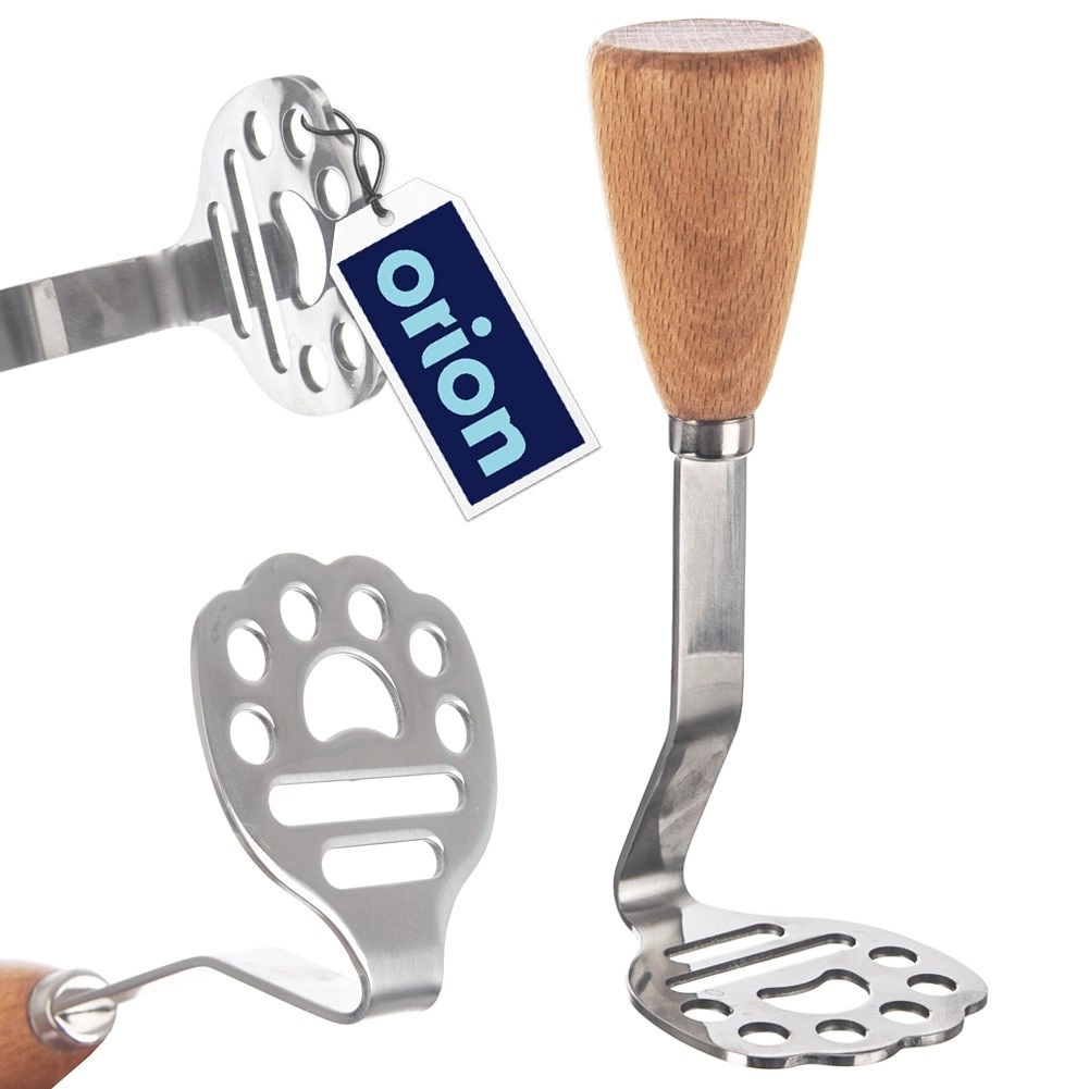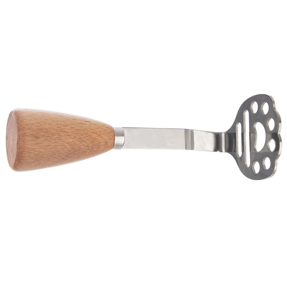Praktikus burgonya- és zöldségtörő minőségi rozsdamentes acélból, ergonomikus fa nyéllel, amely selymesen sima pürét biztosít erőfeszítés nélkül. Kompakt méret: 5,5 × 14,5 cm, strapabíró kivitel, könnyű tisztítás, univerzális felhasználás burgonyához, zöldségekhez, gyümölcsökhöz és krémekhez, kencéhez.