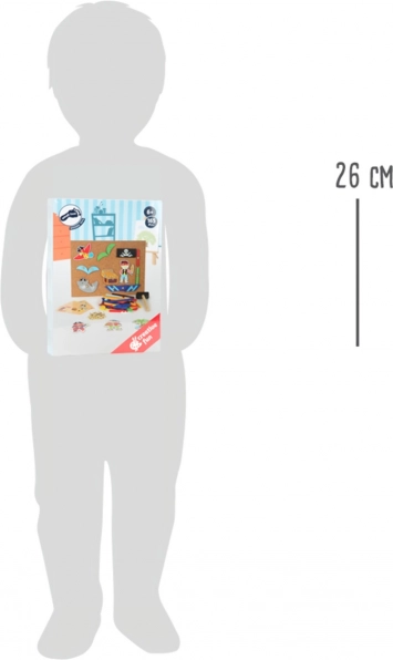 Fedezze fel a small foot kalóz témájú, szórakoztató kalapálós játékát, amely fejleszti a kreativitást, a koncentrációt és a finommotorikát. A rugalmas parafatáblának, a arany színű rajzszögeknek és a gazdag faelemkínálatnak köszönhetően a gyerekek egyedi képeket alkothatnak. A praktikus tárolódoboz és a négy kétoldalas motívumkártya megkönnyíti a rendszerezést, és inspirációt ad az alkotáshoz.