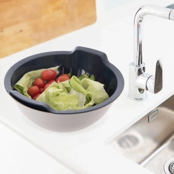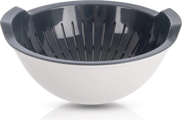 A kivehető, függőleges résekkel ellátott szűrő a vizet a stabil tálba vezeti. Ideális tésztához, gyümölcshöz és zöldséghez.