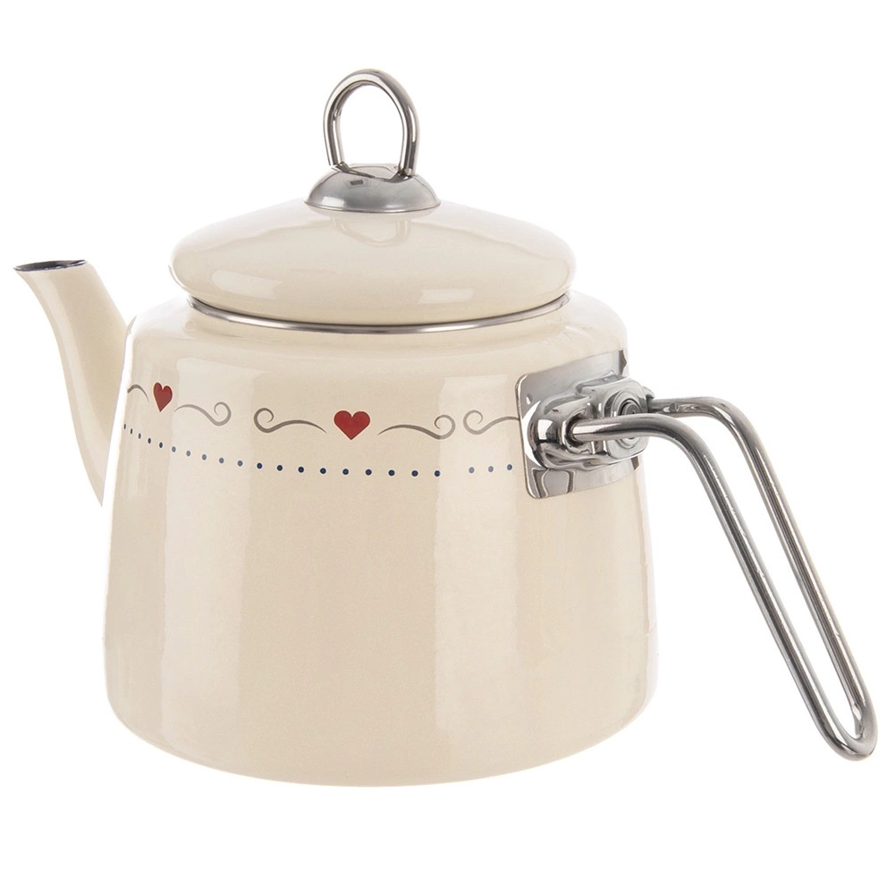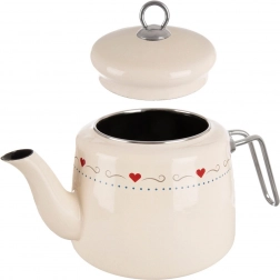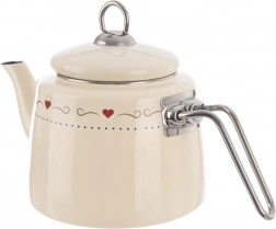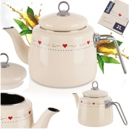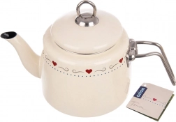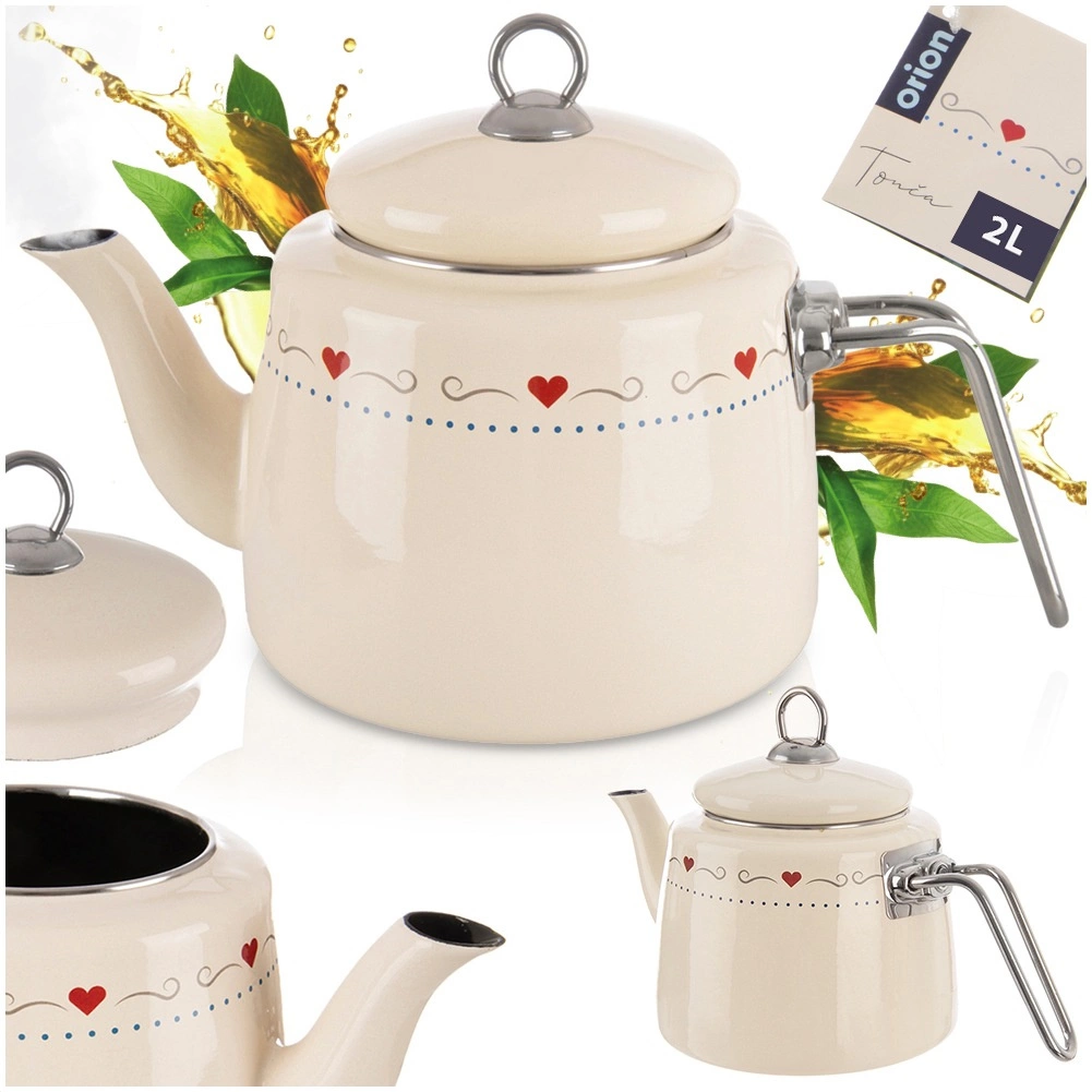 Elegáns, 1,6 l űrtartalmú zománcozott kanna krém színben, finom szívecskés motívummal. Minőségi zománcozott acélból készült, rozsdamentes peremmel és fogantyúval. Alkalmas minden típusú tűzhelyhez, beleértve az indukciósat is, valamint mosogatógépbe is tehető. A praktikus, fogantyús fedő megkönnyíti a víz utántöltését. ORION – eredeti termék, amely megfelel az európai szabványoknak.