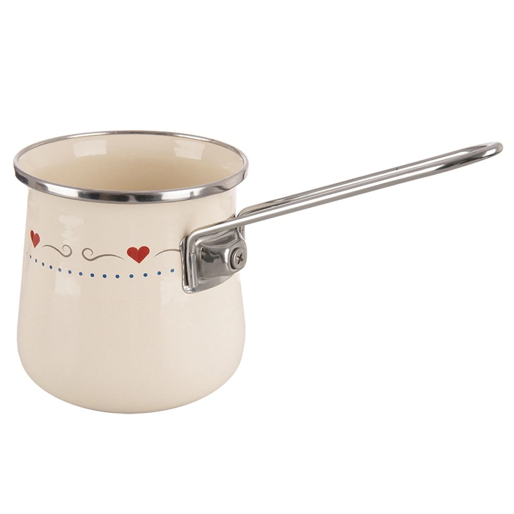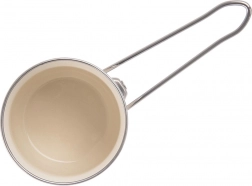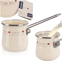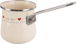 A krémfehér TONCA cezve praktikus és stílusos segítőtárs az aromás kávé kedvelőinek. A zománcozott felület egészségre ártalmatlan, allergiások számára is biztonságos, a rozsdamentes acél perem és nyél tartósságot és kényelmes kezelhetőséget biztosít. A 600 ml-es űrtartalomnak köszönhetően magadnak és vendégeidnek is készíthetsz kávét.