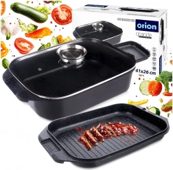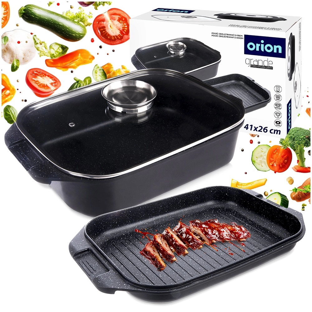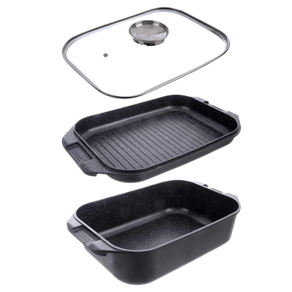 - 3 az 1-ben tepsi grillserpenyővel és üvegfedővel