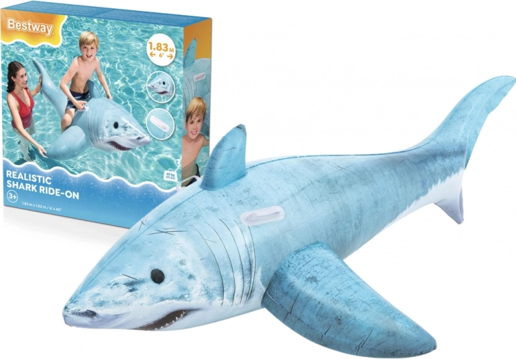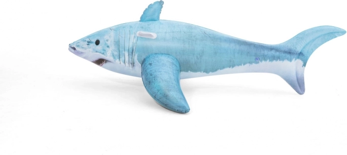 A részletgazdag mintázattal, uszonyokkal és farokkal ellátott cápa minden medencében kitűnik. A 183 × 102 cm-es méret kényelmet és stabilitást biztosít a használat során.