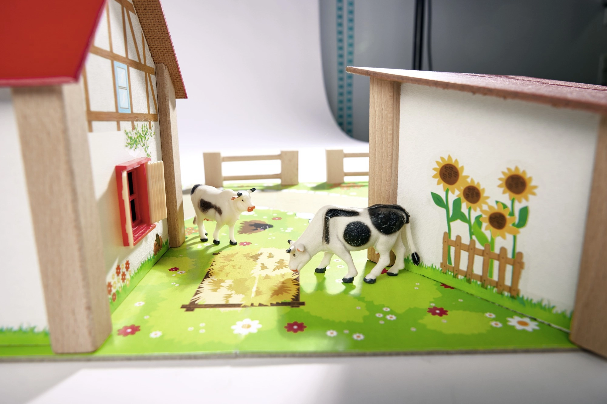 Nagy pajta istállóval, nyitható átjárókkal és karámokkal autentikus környezetet teremt. A gyerekek etethetik az állatokat, kivezethetik a kifutókba, és megszervezhetik a farm életét.