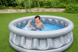 Ajándékozzon a gyerekeknek nyári felfrissülést a űrhajó stílusú, BESTWAY márkájú felfújható medencével. A kompakt 152 × 43 cm méreteknek köszönhetően ideális kertbe és teraszra egyaránt, puha alja kényelmet biztosít, a stabil falak pedig könnyű felfújást és leeresztést tesznek lehetővé. Tökéletes választás 3 éves kortól – szórakozás és biztonságos vízijáték a friss levegőn.