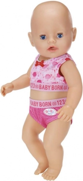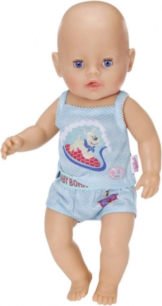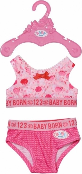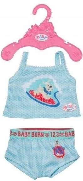Két kényelmes BABY BORN alsónemű szett 43 cm-es babákhoz, amely minden kis gondoskodót megörvendeztet. A rózsaszín változat kagyló mintával és hullámokra emlékeztető cikkcakk csíkos bugyival hódít, a kék verzió pedig csepp motívummal, amely a tengeri pikkelyeket idézi. A ruhácskák puhák, kellemes tapintásúak, és úgy tervezték őket, hogy könnyen felvehetők legyenek felesleges időhúzás nélkül.