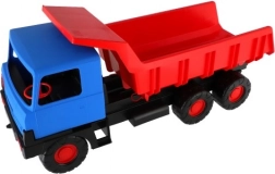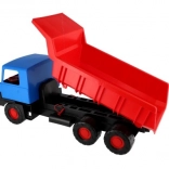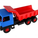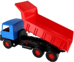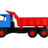 Masszív műanyag teherautó kék fülkével és piros billenőplatóval, amely örömet szerez a kis építőknek otthon és a homokozóban egyaránt. A 75 cm-es hossz, a strapabíró kerekek és a működő billentés révén könnyedén szállíthat homokot, kavicsokat és játékokat. A könnyű és biztonságos kialakítás támogatja a kreatív szabadtéri játékot.