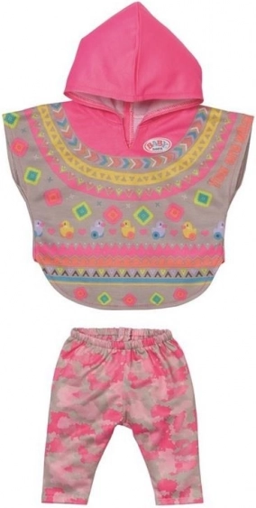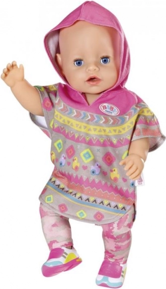 Adj új, színes és kényelmes öltözetet BABY born babádnak! Ez a szett játékos dizájnt ötvöz a praktikus megoldásokkal – a puha, kapucnis poncsó, a kényelmes, terepmintás nadrág és az összeillő cipőcskék tökéletesen harmonikus megjelenést teremtenek minden alkalomra.