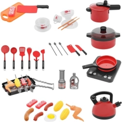 A kis szakácsoknak szánt komplett készlet akár 43 elemet kínál modern dizájnnal. Találsz benne grillt, indukciós főzőlapot, serpenyőt és lábasokat, vágódeszkát biztonságos késekkel, kannát, edényeket, ételeket és sok egyéb kiegészítőt. A játék fejleszti a finommotorikát, a kreativitást és a szociális készségeket, és minőségi, biztonságos, éles szélek nélküli műanyagból készült.