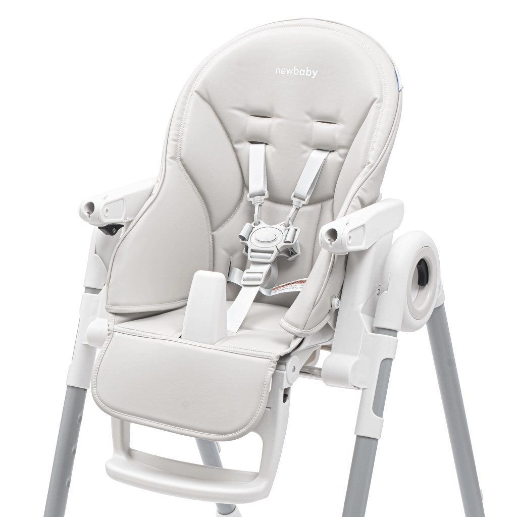 A NEW BABY Iris gyermek etetőszék meleg szürke színben egyesíti a biztonságot, a könnyű karbantartást és a sokoldalú beállítási lehetőségeket. Széles, formázott ülőfelületet, puha ökobőr kárpitozást, 5 pontos biztonsági övet és bőséges pozícionálási lehetőségeket kínál a gyermek és a szülők maximális kényelméért.