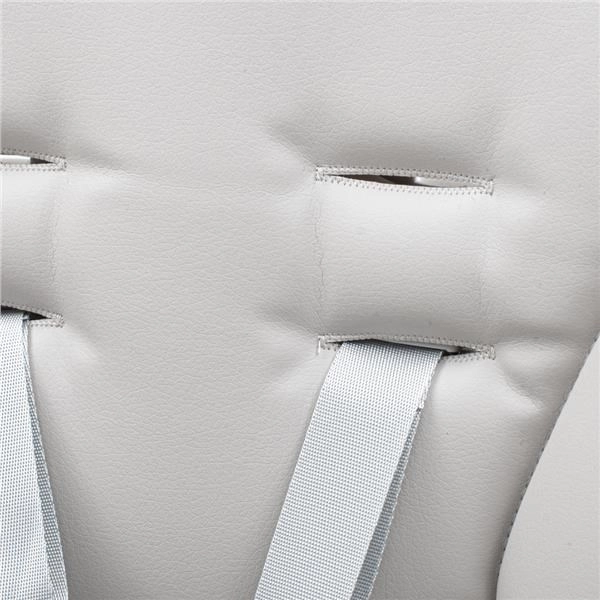 A biztonságról az 5 pontos öv és a stabil szerkezet gondoskodik. A dupla, levehető tálca megkönnyíti a tálalást és a tisztítást, míg a széles, formázott ülőfelület és a puha párnázás kényelmet biztosít étkezés és pihenés közben is.
