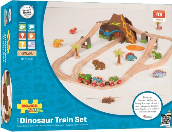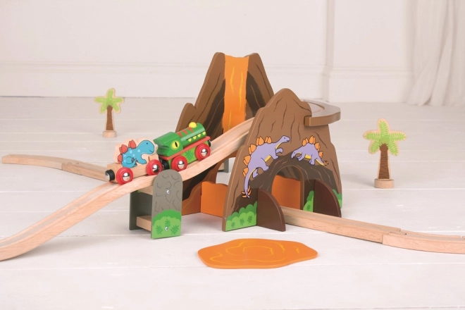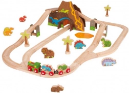 Élje át az őskori kalandot egy olyan vasútpályán, ahol a vasút találkozik a dinoszauruszok világával. A gyerekek pályát építenek az alagutas vulkán köré, végighaladnak a dínóvonattal, és saját történeteket alkotnak a színes figurákkal. A fa elemek masszívak, kellemes tapintásúak és ideálisak a mindennapos játékhoz.