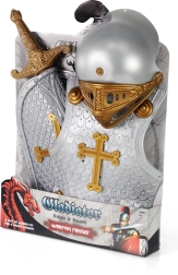 A készlet tartalmaz mindent, amire a kis lovagoknak szükségük van hősies álmaik megvalósításához – kardot hüvellyel, pajzsot, sisakot és mellényt.