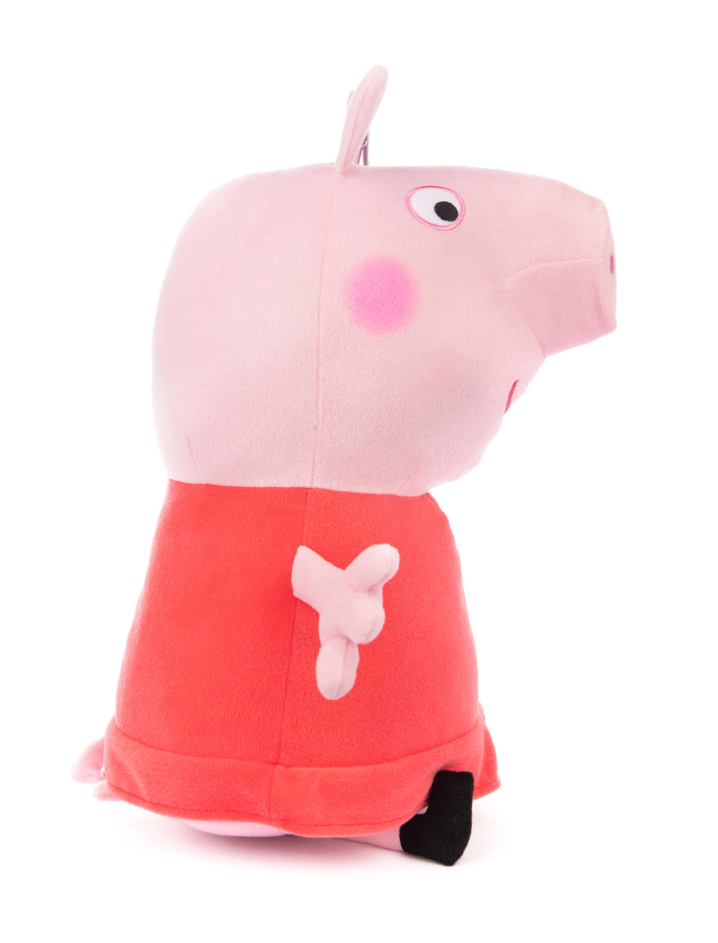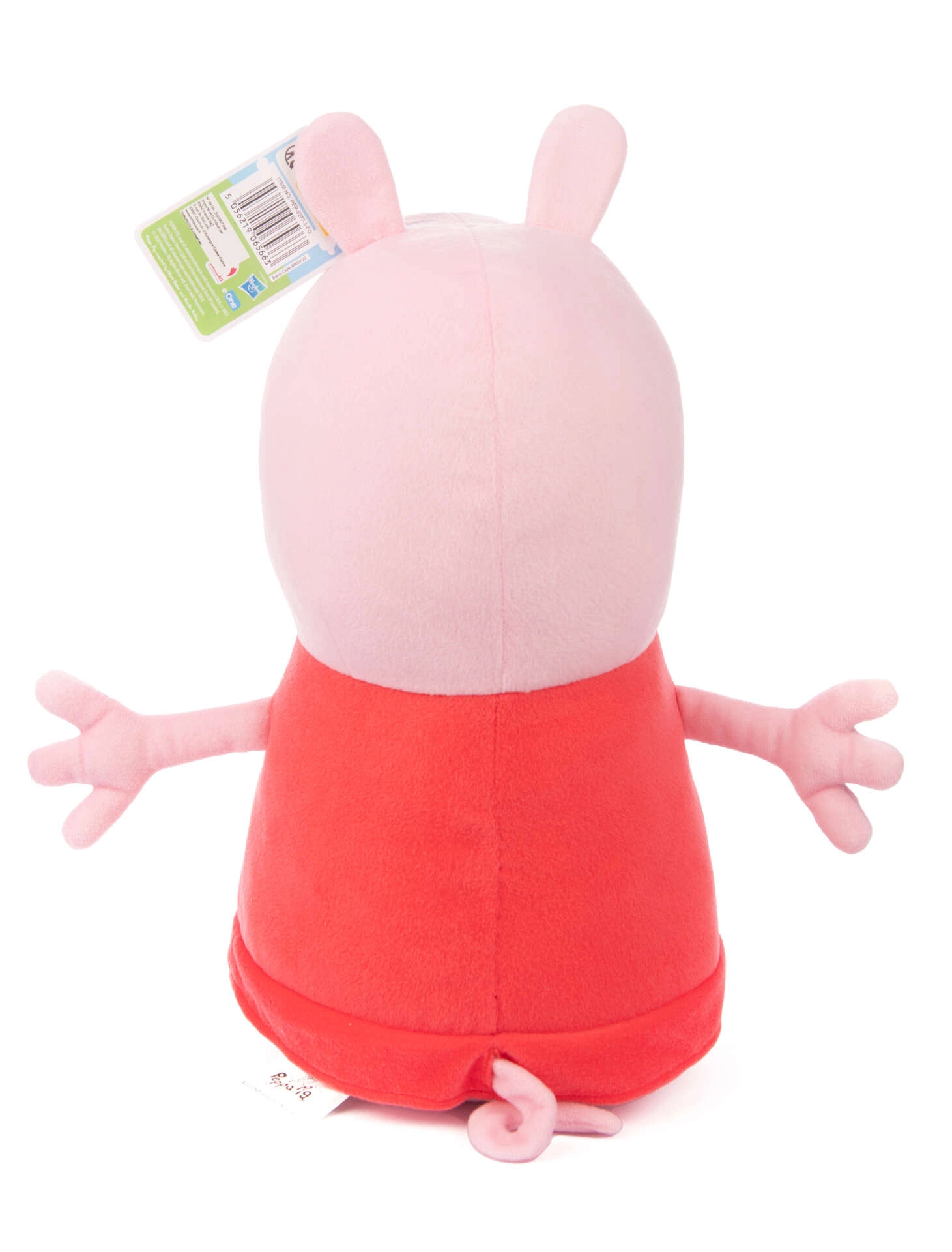 A hű részletek, mint a hímzett szemek és mosoly, a jellegzetes piros ruha és a fekete cipőcskék a Peppa Pig sorozatból ismert eredeti megjelenést hangsúlyozzák. Az apró részek nélküli, biztonságos kivitel már 1 éves kortól megfelelő.
