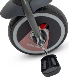 A masszív acél váz és az edzett EVA habból készült kerekek stabilitást és kiváló tapadást nyújtanak, fújást nem igényelnek. A szabadonfutó funkció, a hátsó kerekeken lévő lábfékek és az első sárvédő tovább növelik a kényelmet és az irányítást. A összecsukható kialakításnak köszönhetően a tricikli könnyedén elfér az autó csomagtartójában.