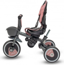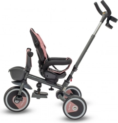 Ez a tricikli a kényelmet, a biztonságot és a sokoldalúságot ötvözi. A forgatható és csúsztatható ülés állítható háttámla-dőlésszöggel lehetővé teszi az utazást menetirányban és menetiránnyal szemben is, míg az ötpontos övek és a levehető biztonsági karfa maximális biztonságot nyújtanak. A nagy, összecsukható napellenző betekintő ablakkal véd a naptól, és mindig rálátást biztosít a gyermekre.