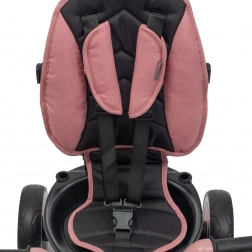 A puhán párnázott ülés ötpontos biztonsági övvel 360°-ban forgatható és állítható előre-hátra, így a pedálok ideális elérése biztosított. A gyermek menetiránnyal szemben és menetirányban is utazhat.