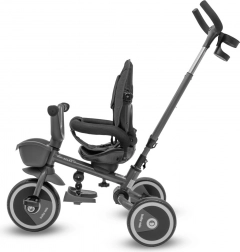 A biztonságot és a sima haladást az ötpontos biztonsági öv, a szabadonfutó funkció a szabad pedálozáshoz, az ütéseket elnyelő EVA hab kerekek és a hátsó kerekeken lévő lábfékek garantálják. A praktikus felszereltséghez tartozik a nagy, összecsukható napellenző ablakos kémlelőnyílással, egy pohártartó és egy játékkosár.