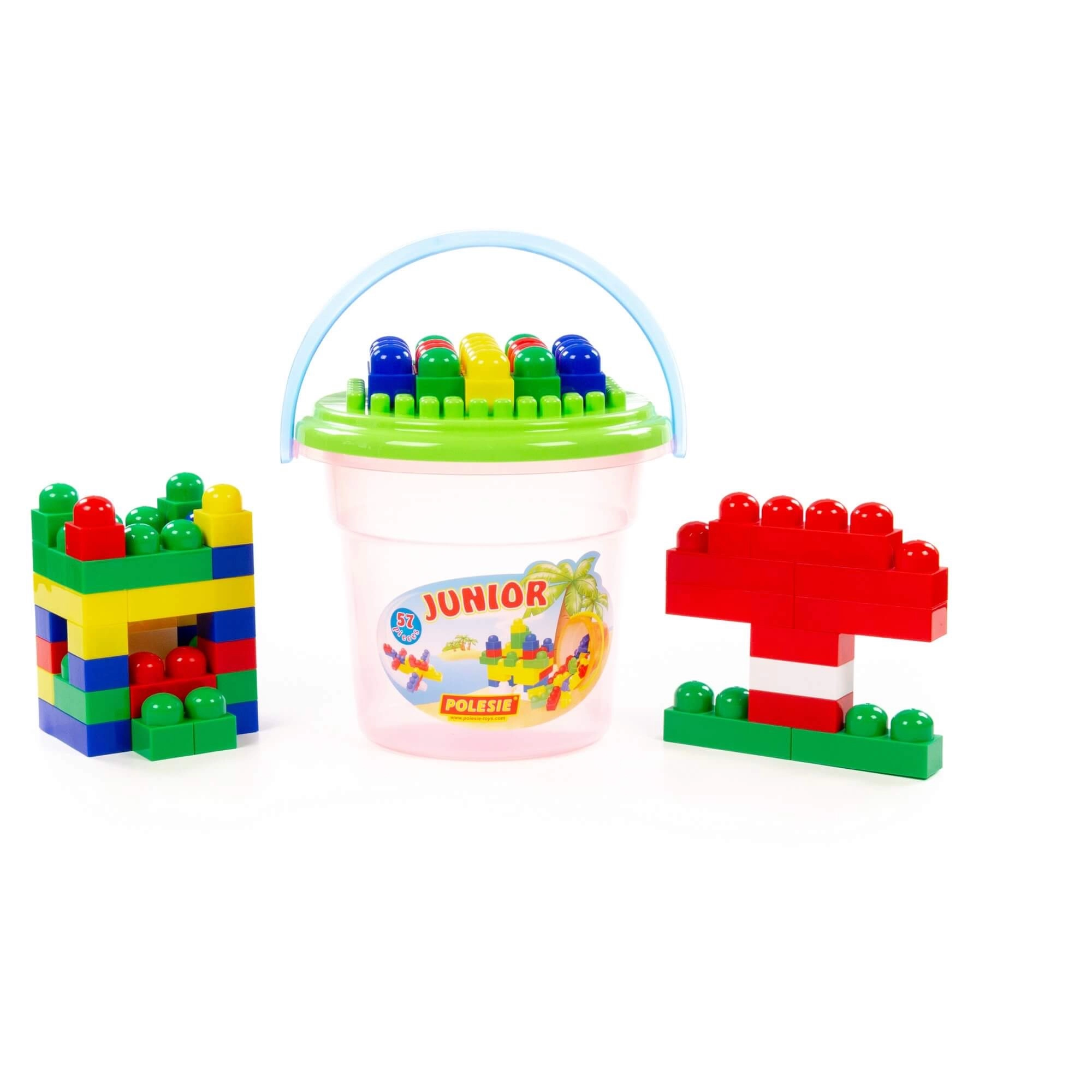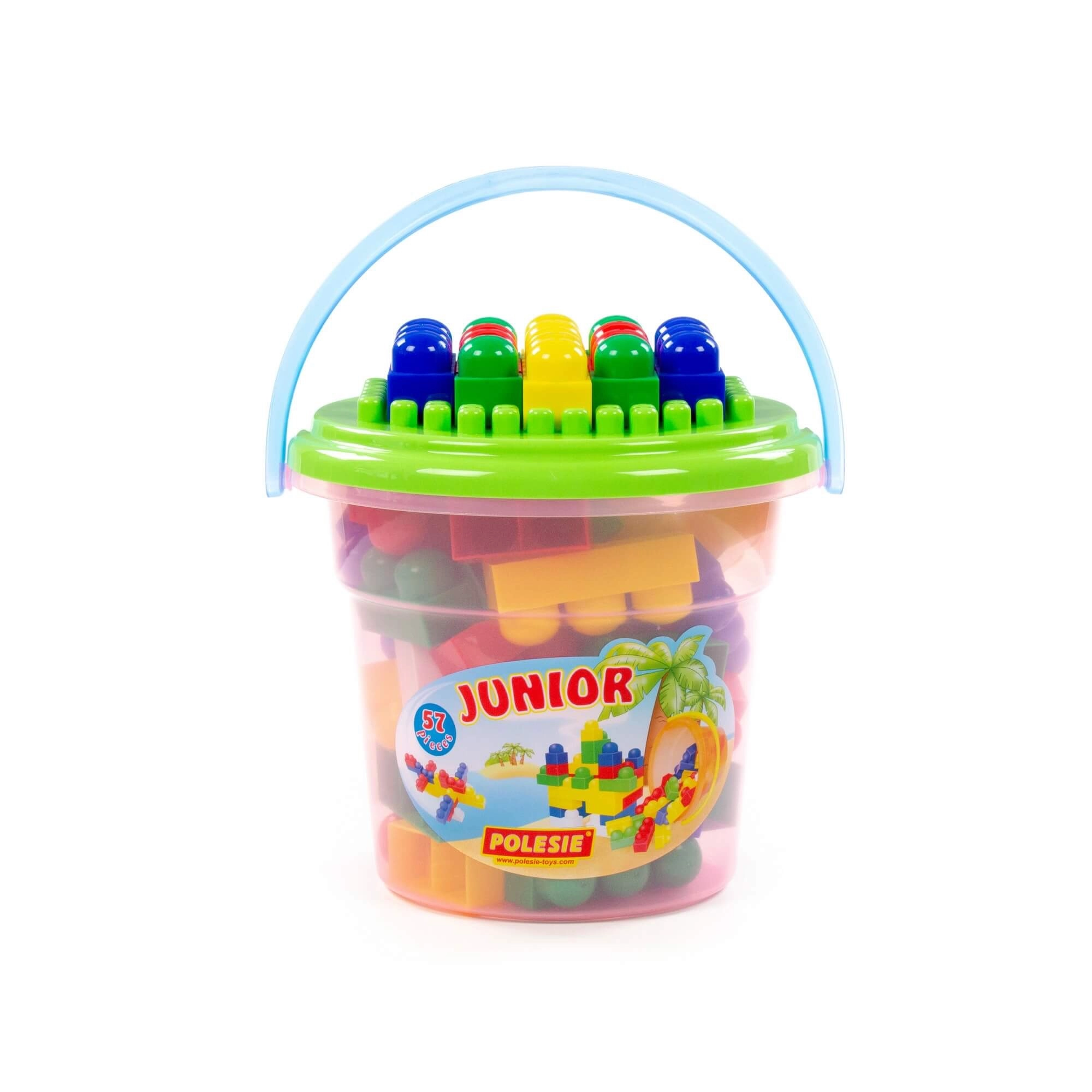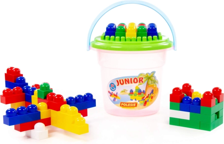 Fedezd fel a kreatív világot a Junior Construction gyerek építőkészlettel, praktikus vödörben 57 darabbal. A színes, lekerekített kockák ideálisak a kis kezekhez, fejlesztik a finommotorikát, a képzelőerőt és a játékon keresztüli tanulást. A tető építőalapként szolgál, a vödör pedig könnyű tárolást és hordozást biztosít.