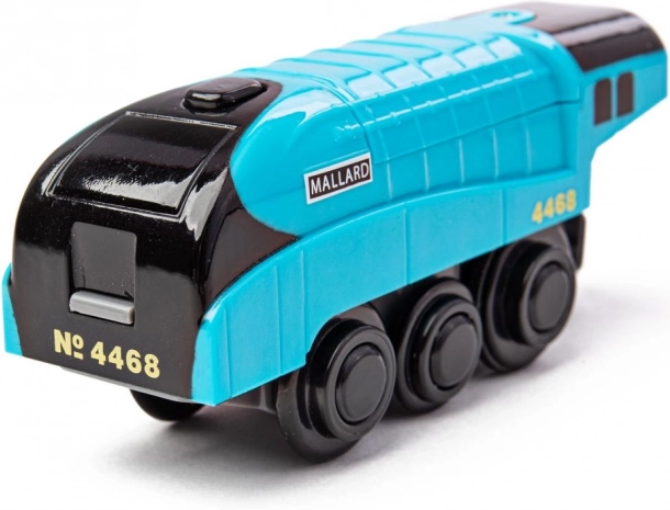 A Mallard elektromos mozdony nemcsak a feltűnő kék dizájnjával tűnik ki, hanem mágneses rendszerének köszönhetően további vagonok vontatására is képes. Az egyetlen gombbal történő vezérlés a kéményen lenyűgözően egyszerű. A mozdony 2 db AAA elemmel működik, amelyek nem részei a csomagnak.