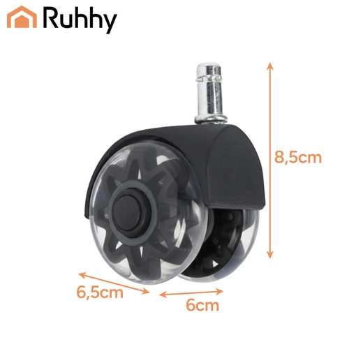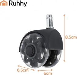 Cserélje le régi görgőit modern, halk RUHHY 2,5" görgőkre. Halk működés (25 dB alatt), zökkenőmentes 360°-os mozgás és karcmentes padlóvédelem a puha PU futófelületnek köszönhetően. A univerzális 11 × 22 mm-es csap és a szerszám nélküli gyors szerelés ideálissá teszi laminált padlóra, parkettára, járólapra és szőnyegre is.