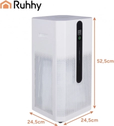 A RUHHY Ioniqs okos légtisztító háromlépcsős szűrést (előszűrő + HEPA H12 + aktív szén) és ionizálást kombinál, hogy eltávolítsa a port, a pollent, a PM2.5 szmogot, atkákat, baktériumokat, vírusokat és a kellemetlen szagokat. A CADR 370 m³/h révén gyorsan megtisztítja a levegőt a nappaliban, hálószobában vagy irodában, a színes levegőminőség‑jelző pedig folyamatosan tájékoztat a környezet állapotáról.