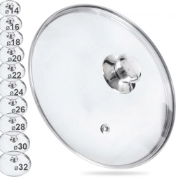 Univerzális, 32 cm átmérőjű üveg fedő rozsdamentes peremmel és gombbal, amely megbízhatóan illeszkedik lábasokra és serpenyőkre. A hőálló, átlátszó üveg lehetővé teszi a főzés ellenőrzését megemelés nélkül, a szellőzőnyílás elvezeti a felesleges gőzt, a enyhén domború forma pedig támogatja a hő áramlását. A szoros illeszkedésnek köszönhetően felgyorsítja a főzést és csökkenti a fröcskölést.