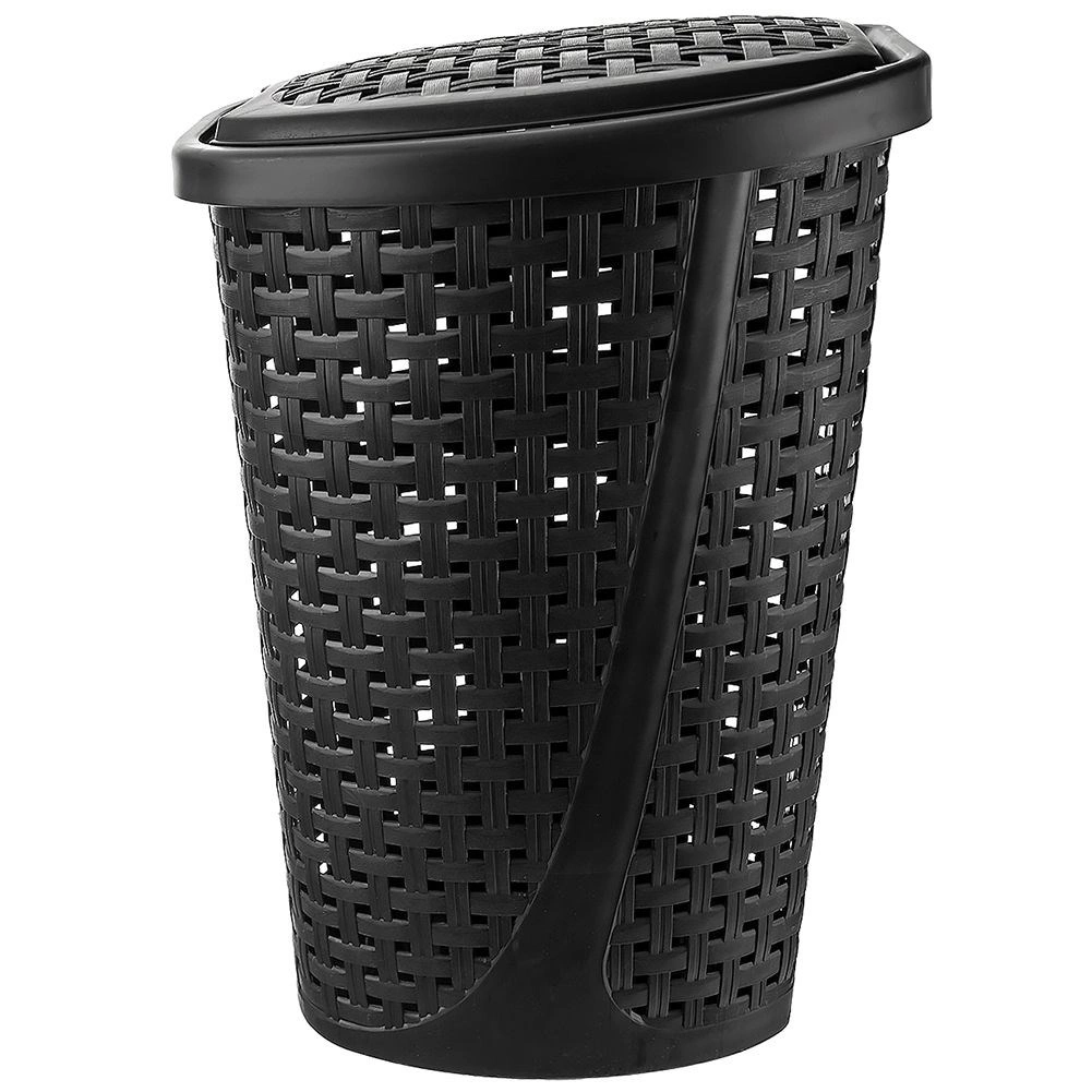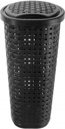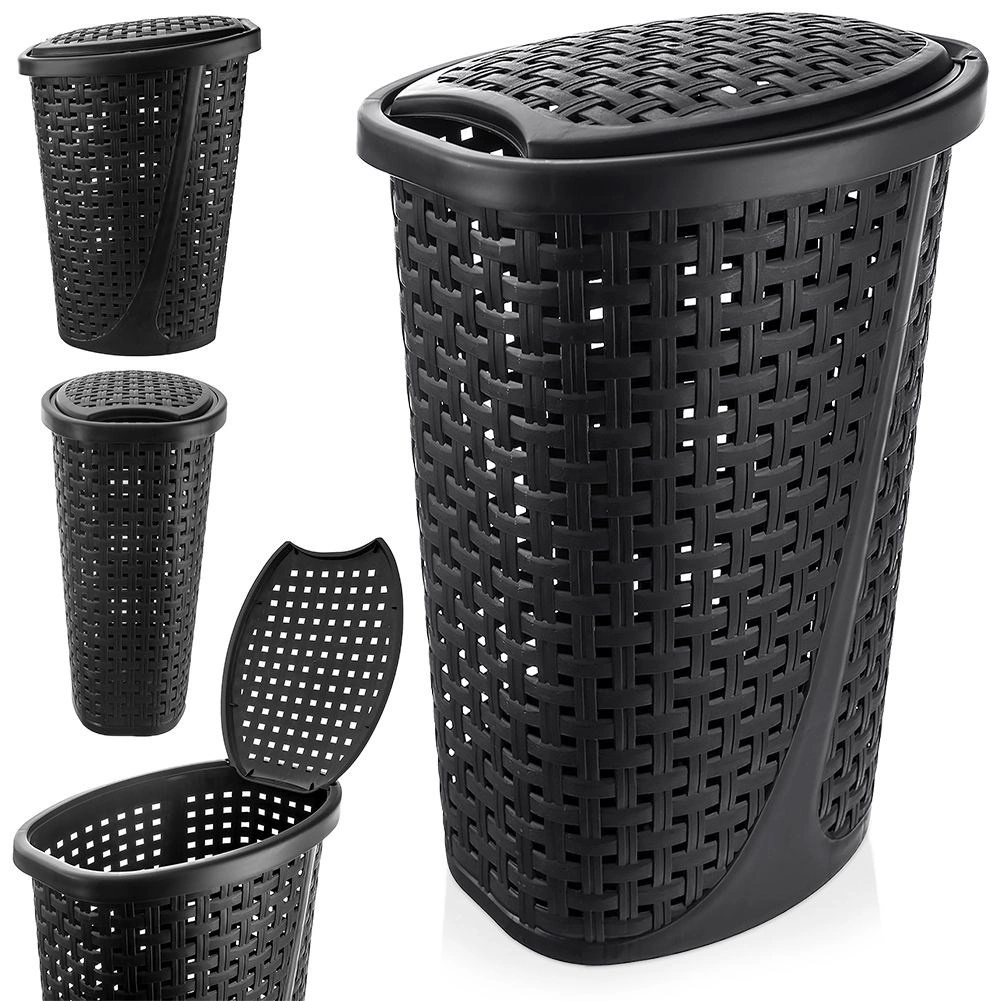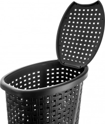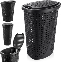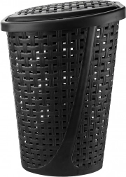 Praktikus 45 l-es szennyeskosár zárható fedéllel, elegáns fekete színben. Keskeny formájának, szellőző rattan-hatású megjelenésének és könnyű, mégis tartós műanyagának köszönhetően remekül illik a mosógép mellé és kisebb fürdőszobákba is. Az integrált fogantyúk, a szellőző perforációk a szagok csökkentésére és a fedél könnyű nyitása kényelmes mindennapi használatot biztosítanak.