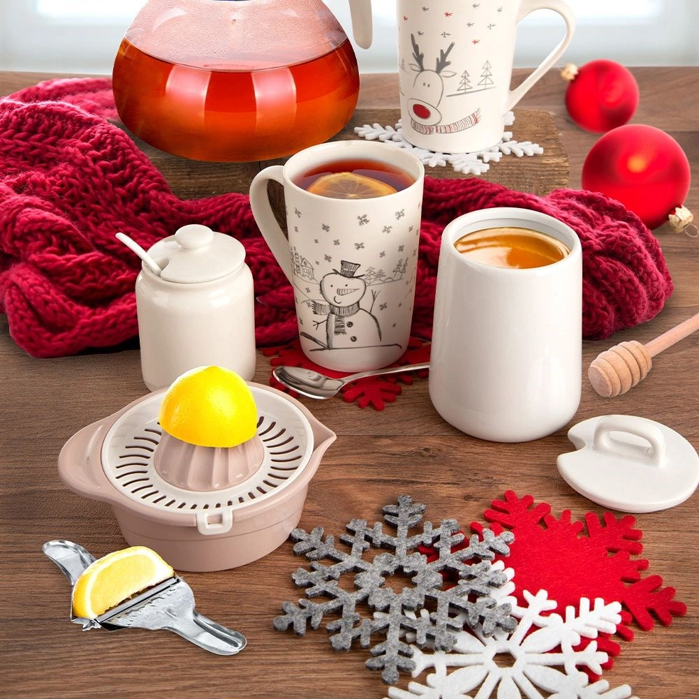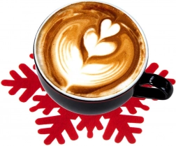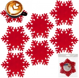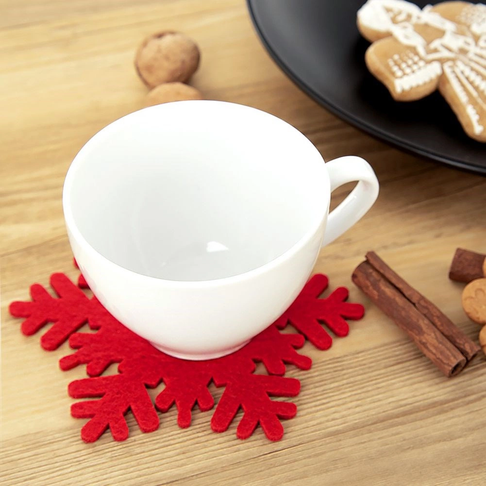 Stílusos, hópehely alakú, piros filc poháralátétek, amelyek megóvják az asztalt a hőtől, nedvességtől és a karcolásoktól, és ünnepi hangulatot teremtenek. A csomag 6 darabot tartalmaz, 13,5 × 13 cm méretben. Ideális bögrékhez, poharakhoz és csészékhez – remek dekoráció, praktikus felületvédelem és téli/karácsonyi kiegészítő az asztalra.