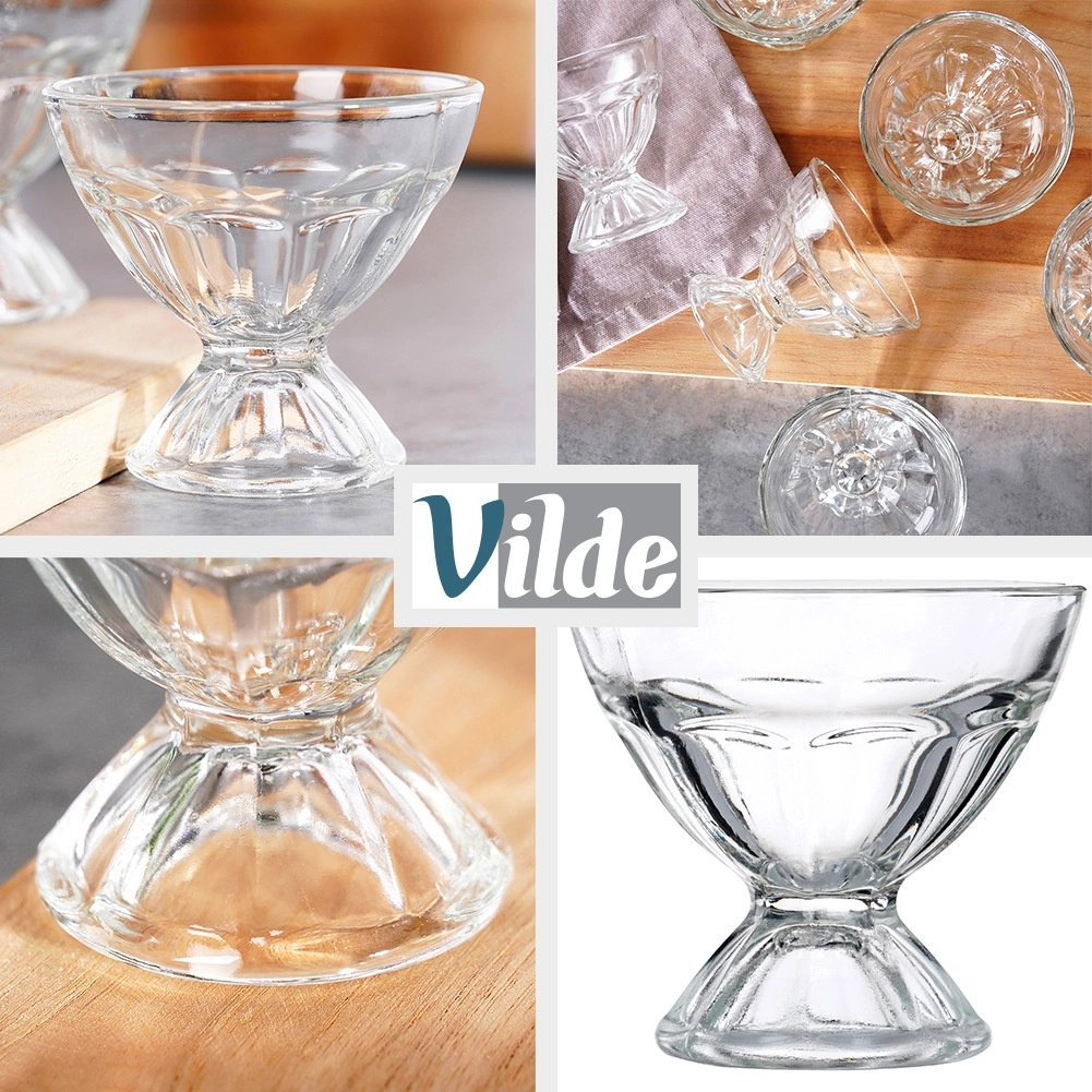 A vastagfalú, átlátszó üveg bordázott dizájnja kiemeli a desszert rétegeit, és egyúttal biztosítja a tartósságot és a stabilitást az asztalon.