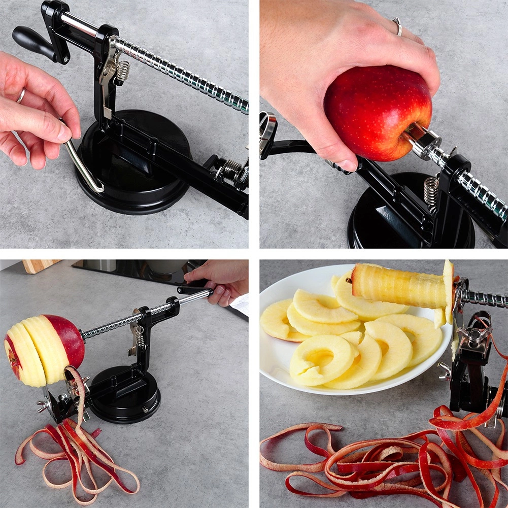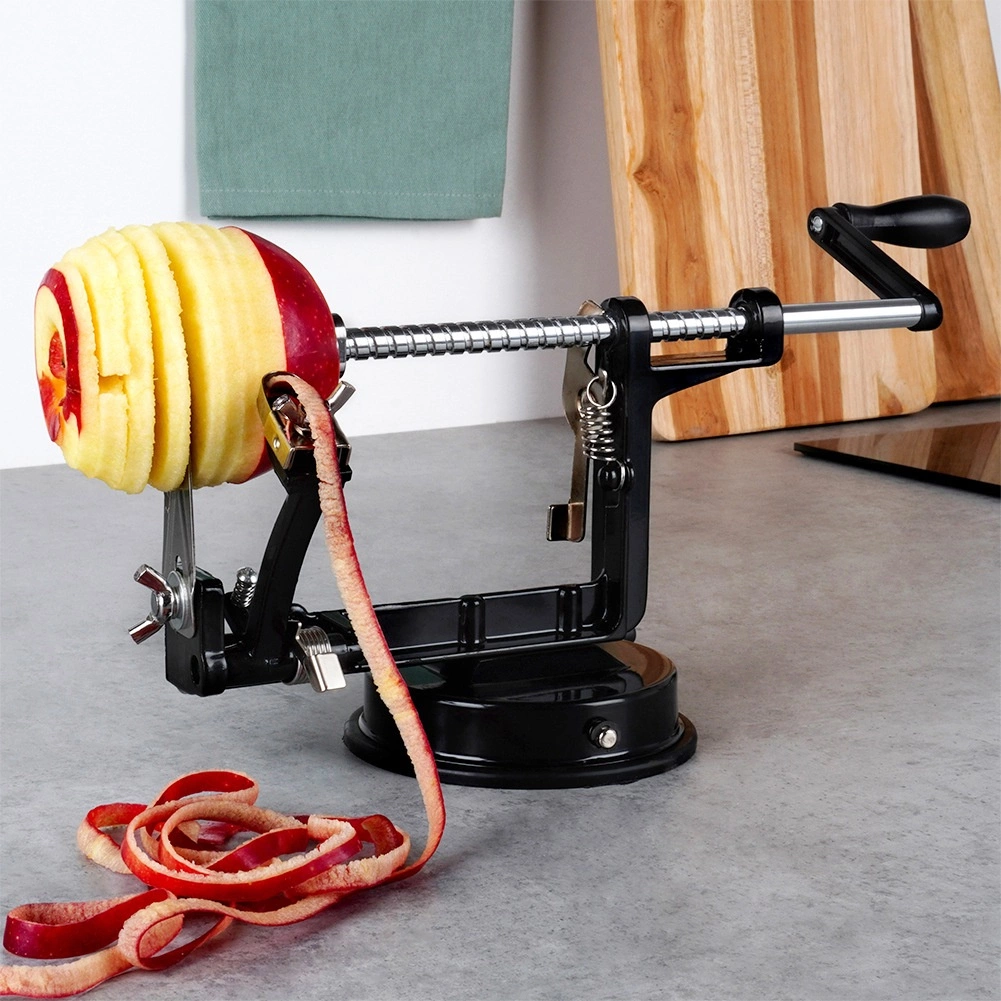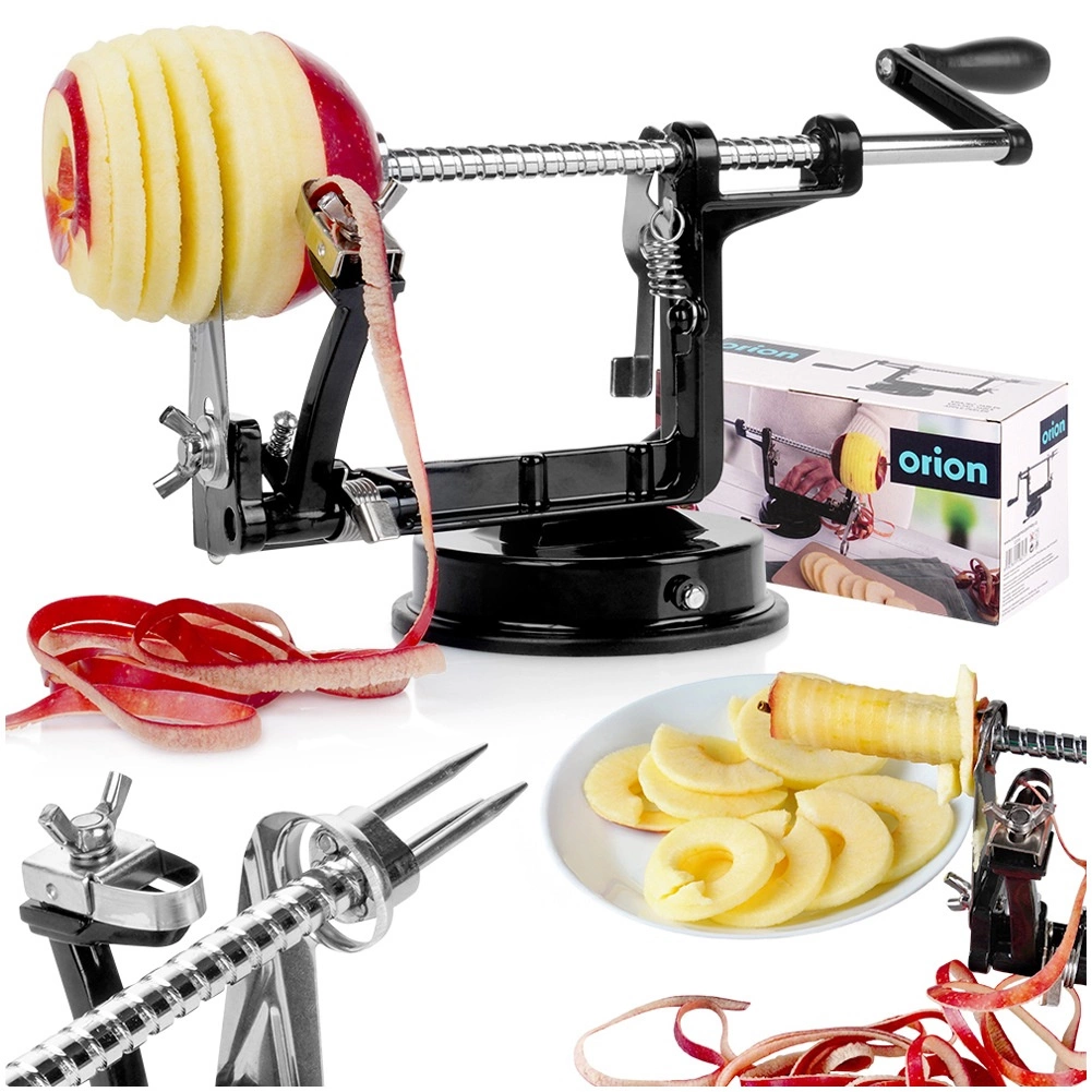 Praktikus konyhai segédeszköz, amely egy művelet során meghámozza, kivágja a magházat, és felszeleteli az almát, körtét vagy burgonyát látványos spirálokra. A precíz vezetésnek és az éles pengéknek köszönhetően szabályos szeleteket kap, amelyek ideálisak réteshez, ropogós chipshez, aszaláshoz vagy dekoratív tálaláshoz.