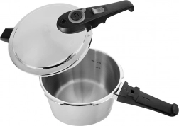 A rozsdamentes acél konstrukció szendvics aljjal kiválóan tárolja és egyenletesen oszlatja el a hőt. Az edény kompatibilis gáz-, elektromos, üvegkerámia-, halogén- és indukciós főzőlapokkal. A karbantartás egyszerű – az edénytest mosogatógépben mosható (a nyomásszabályzó rendszerrel ellátott fedőt kézi mosásra javasolt).