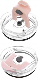 Átlátszó, tömítéssel ellátott fedél zárható ivónyílással és külön nyílással a fém szívószálnak szilikon dugóval.
