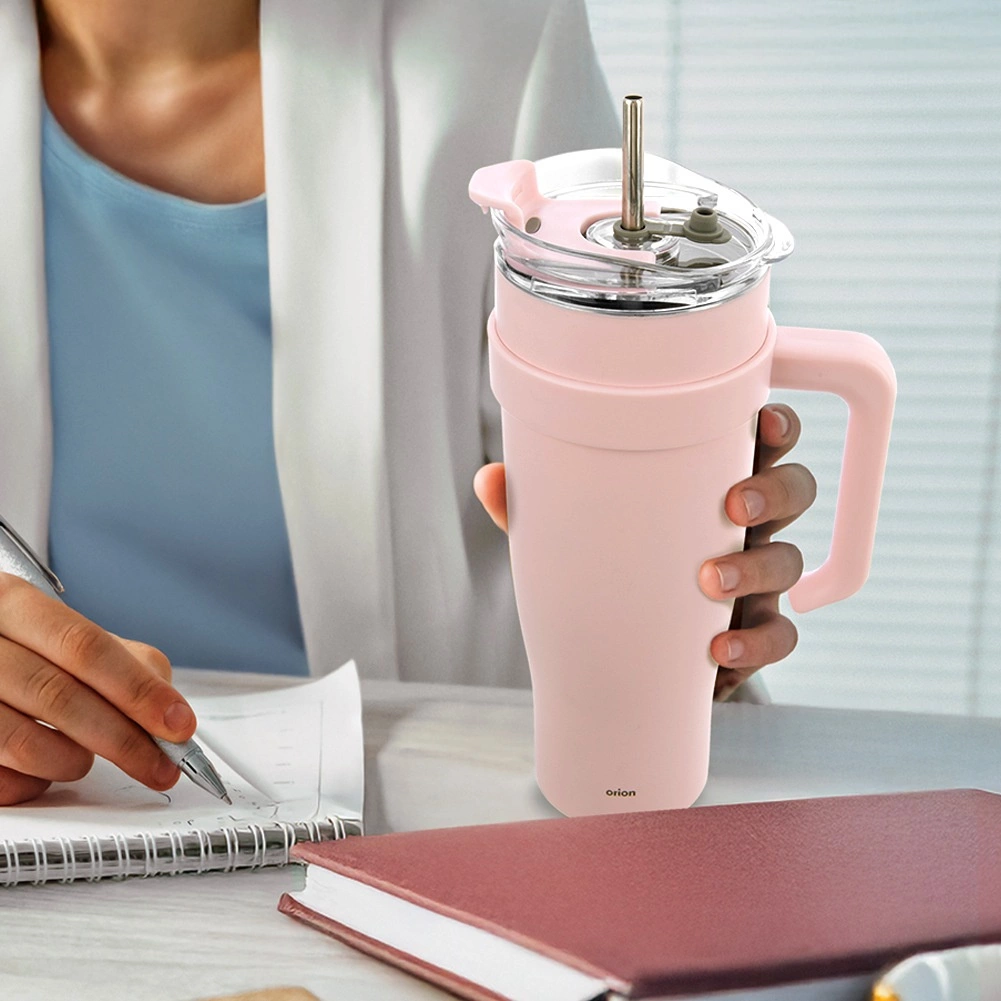 A fedél szilikon tömítéssel minimalizálja a kiömlés kockázatát, a szívószál nyílása szilikon dugóval zárható, és egy külön, zárható ivónyíláson keresztül is ihat. A szűkített alj jobban illeszkedik az autós pohártartókba, a nagy fül pedig megkönnyíti a hordozást.