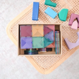 A CONNETIX pasztell kezdőcsomag 64 áttetsző lapot tartalmaz finom színekben, amelyekkel a gyerekek tornyokat, várakat, hidakat és rakétákat építhetnek. A széleken futó mágneseknek köszönhetően az elemek minden oldalról kapcsolódnak, a szerkezetek stabilak, a kellemes „kattanás” pedig további felfedezésre ösztönöz. A készlet kiváló a STEAM készségek fejlesztéséhez – a mágnestantól és egyensúlytól a szimmetrián és a 2D/3D geometrián át.