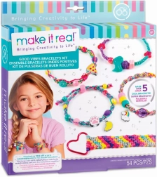 Fedezd fel a kézműves alkotás örömét, és tervezd meg a karkötőidet pontosan a saját fantáziád szerint. A Make It Real Good Vibes készlet élénk színeket, csillogó részleteket és játékos medálokat kombinál, így könnyedén készíthetsz egyedi kiegészítőket magadnak vagy kedves ajándékként.