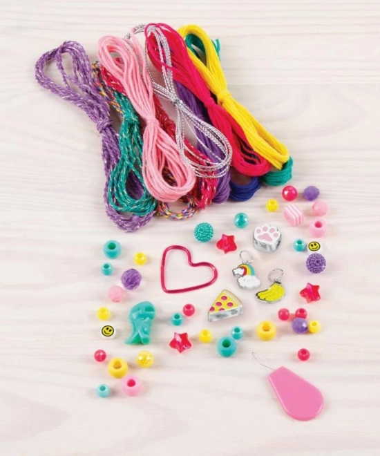 Készíts eredeti, színekben és hangulatban gazdag ékszereket a Make It Real Good Vibes készlettel. A csomag mindent tartalmaz a stílusos karkötők elkészítéséhez – hímzőfonalak, metálos zsinór, gyöngyök, medálok és egyszerű útmutató. Ideális kreatív ajándék gyerekeknek és kezdő alkotóknak.