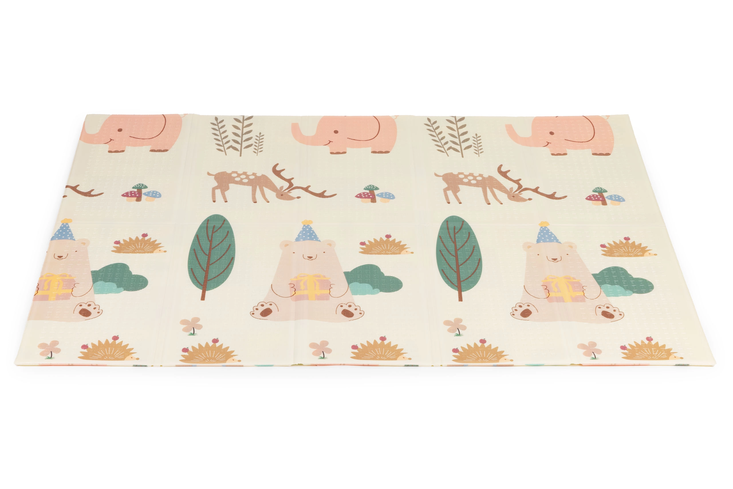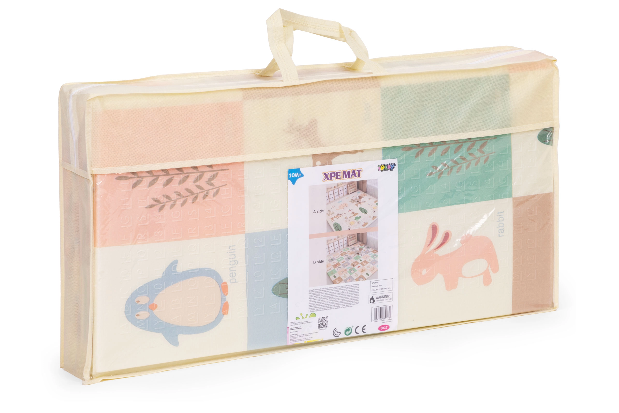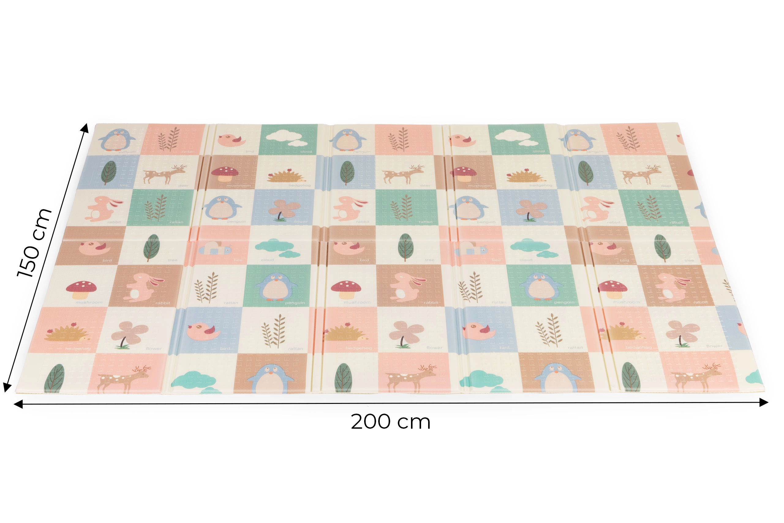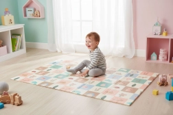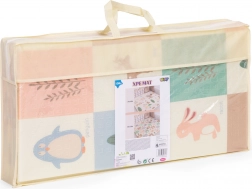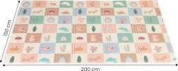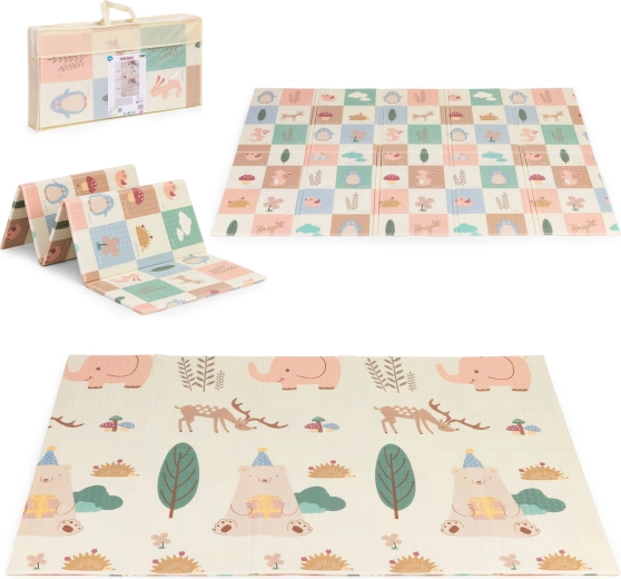 A szőnyeg könnyű, összehajtható és hordtáskával érkezik, így könnyen áthelyezhető a szobák között, kiviheti a kertbe vagy magával viheti nyaralásra. A vízálló, mosható felület bírja a mindennapos használatot és könnyen tisztítható. A 200 × 150 cm-es méretnek és az 1 cm vastagságnak köszönhetően bőséges teret és kényelmet biztosít babáknak és totyogóknak.