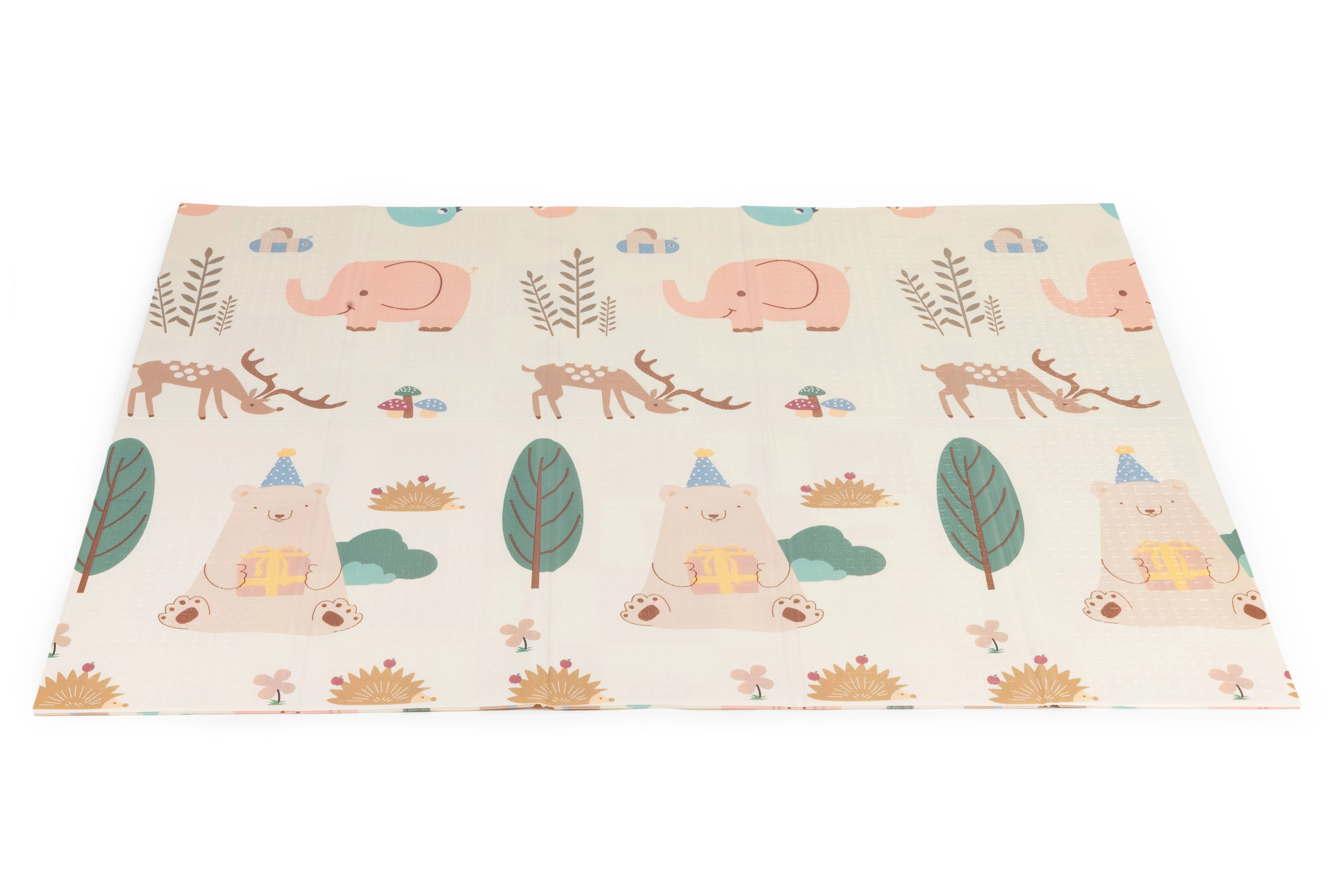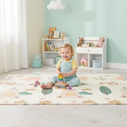 Ez a minőségi XPE habból készült gyerek játszószőnyeg puha, biztonságos és higiénikus helyet teremt babák és totyogók számára. Mindkét oldala színes, fejlesztő motívumokkal díszített állatokkal és természeti elemekkel, amelyek ösztönzik a kreativitást és a természetes tanulást. A csúszásmentes textúra mindkét oldalon helyben tartja a szőnyeget kúszás, építőkockázás és az első lépések közben.