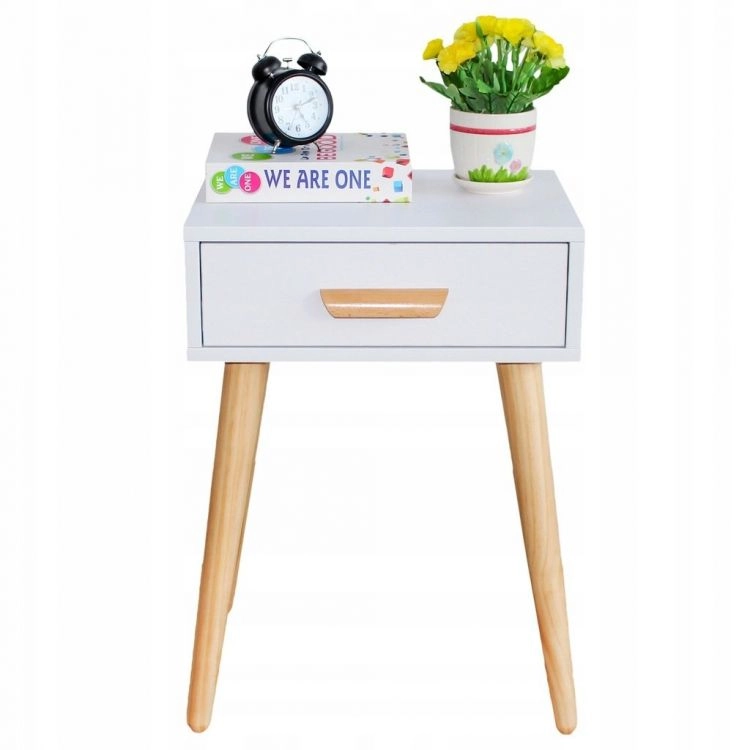 A felső lap laminált faforgácslapból készül, karc- és elszíneződésálló, a masszív fenyő lábak kiváló stabilitást biztosítanak. A beépített fiók mindent kéznél tart – a könyvtől és telefontól kezdve egészen a szemüvegig vagy apró kozmetikumokig.