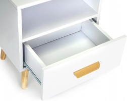 A MODERNHOME 2 darabos éjjeliszekrény-szett ideális választás hálószobába és nappaliba egyaránt. A minimalista, fehér dizájn könnyen illeszthető modern és skandináv enteriőrbe, miközben a kompakt méret helytakarékos, mégis elegendő felületet kínál lámpának, könyvnek vagy telefonnak.