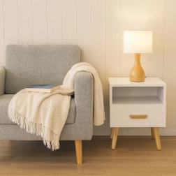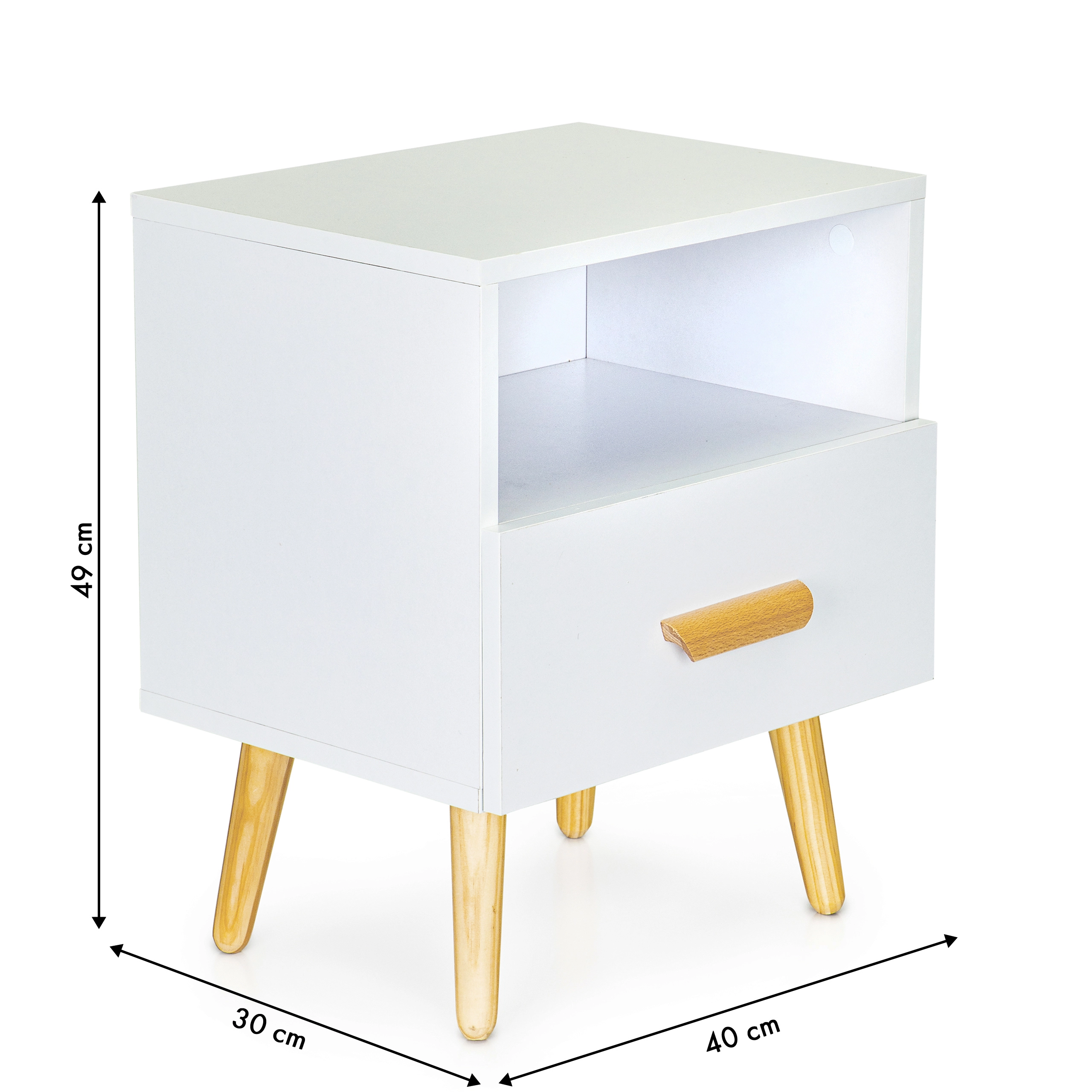 Kis helyigény mellett is elegendő felület lámpának, könyvnek vagy telefonnak. Ideális kisebb hálókba és garzonokba.