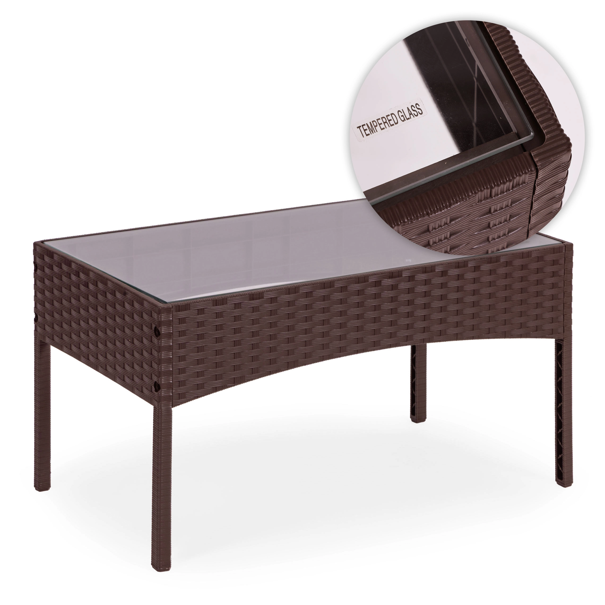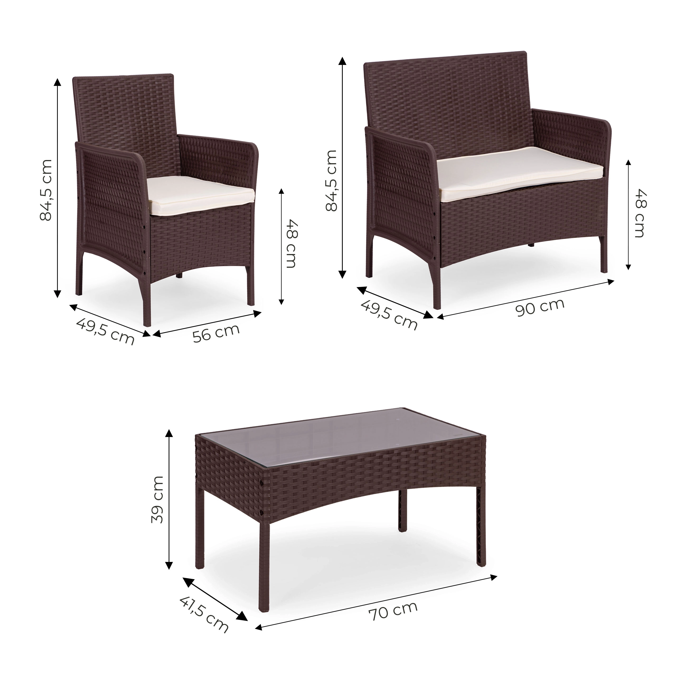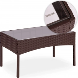 Alakítson ki kellemes helyet a kikapcsolódásra és beszélgetésre. Ez a 4 részes, barna kerti garnitúra a technorattan megjelenést egyesíti a strapabíró műanyag gyakorlati előnyeivel. Tökéletes a mindennapi használatra a kertben és a teraszon, az asztal edzett üveglapja pedig stabil és biztonságos felületet kínál kávéhoz és frissítőkhöz.
