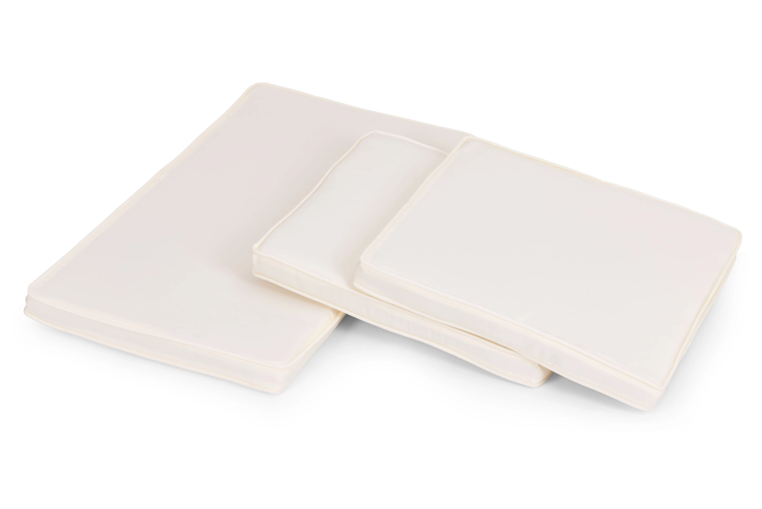A szett 160 g/m² poliészterből készült, 5 cm vastag ülőpárnákat tartalmaz. Kényelmes ülést biztosítanak, és jobban ellenállnak a nedvességnek és a napsugárzásnak.