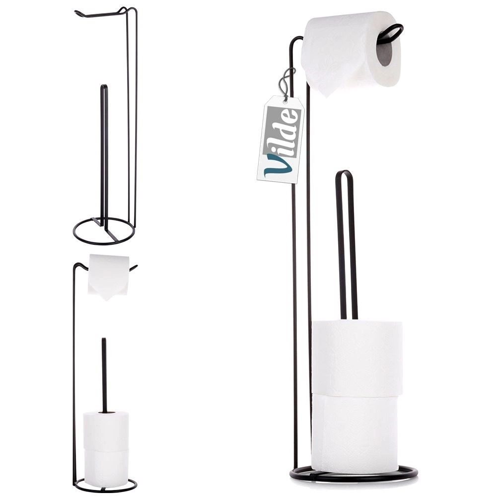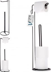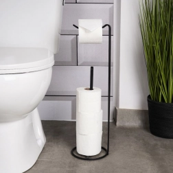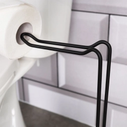 Ez a szabadon álló WC‑papírtartó ipari loft stílusban ötvözi a funkcionalitást és az eleganciát. A felső kar kényelmes adagolóként szolgál, míg a függőleges oszlop akár négy tartalék gurigát is befogad, így a papír mindig kéznél van, és áttekinthetőek a készletek.